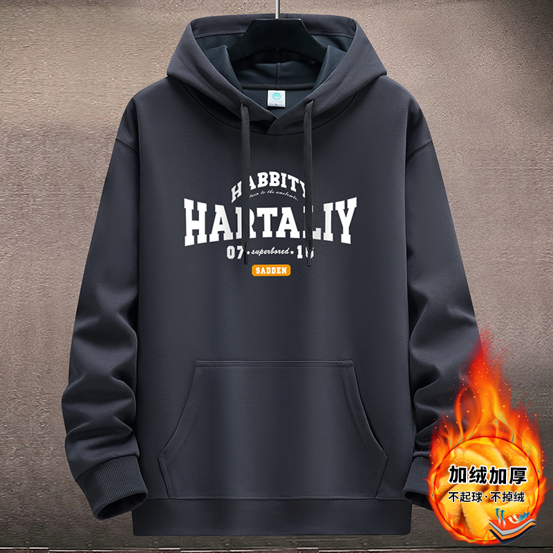 秋冬季加绒卫衣男连帽衫重磅加厚套头保暖青年带帽男装潮流外套