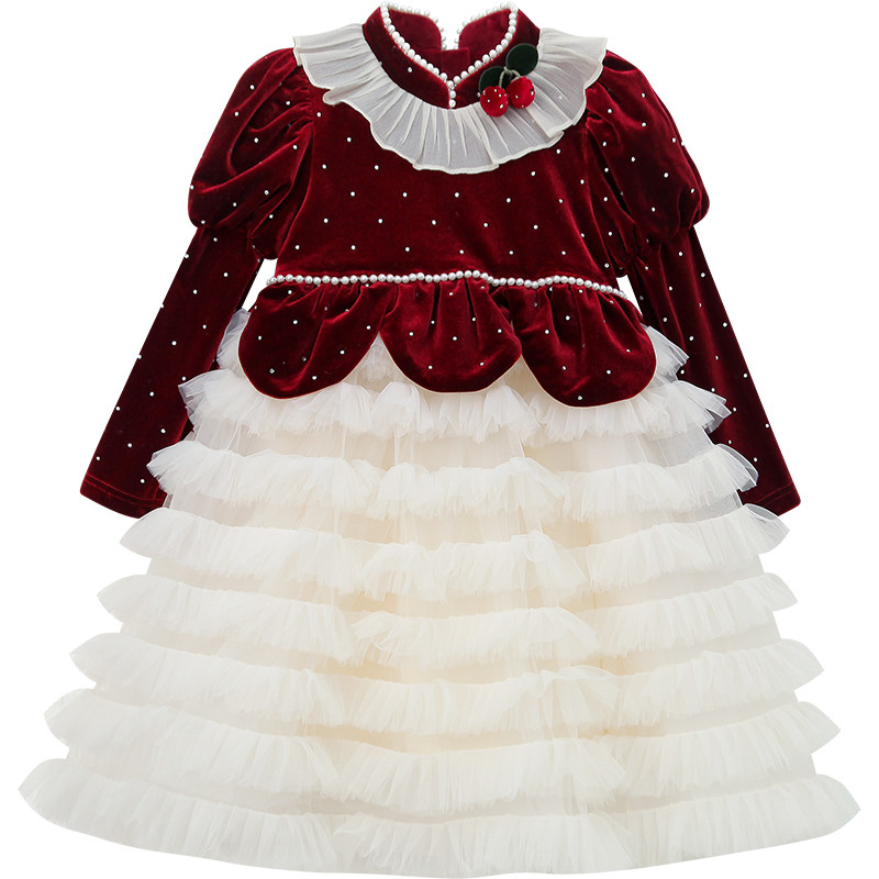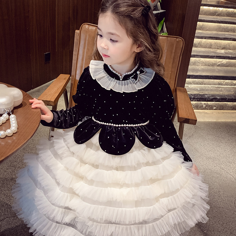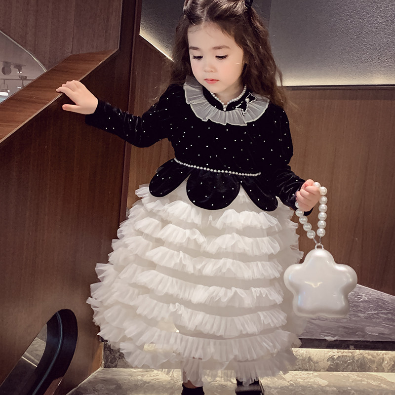 女童公主裙冬装2025新款洋气儿童网纱泡泡袖连衣裙女孩法式丝绒裙