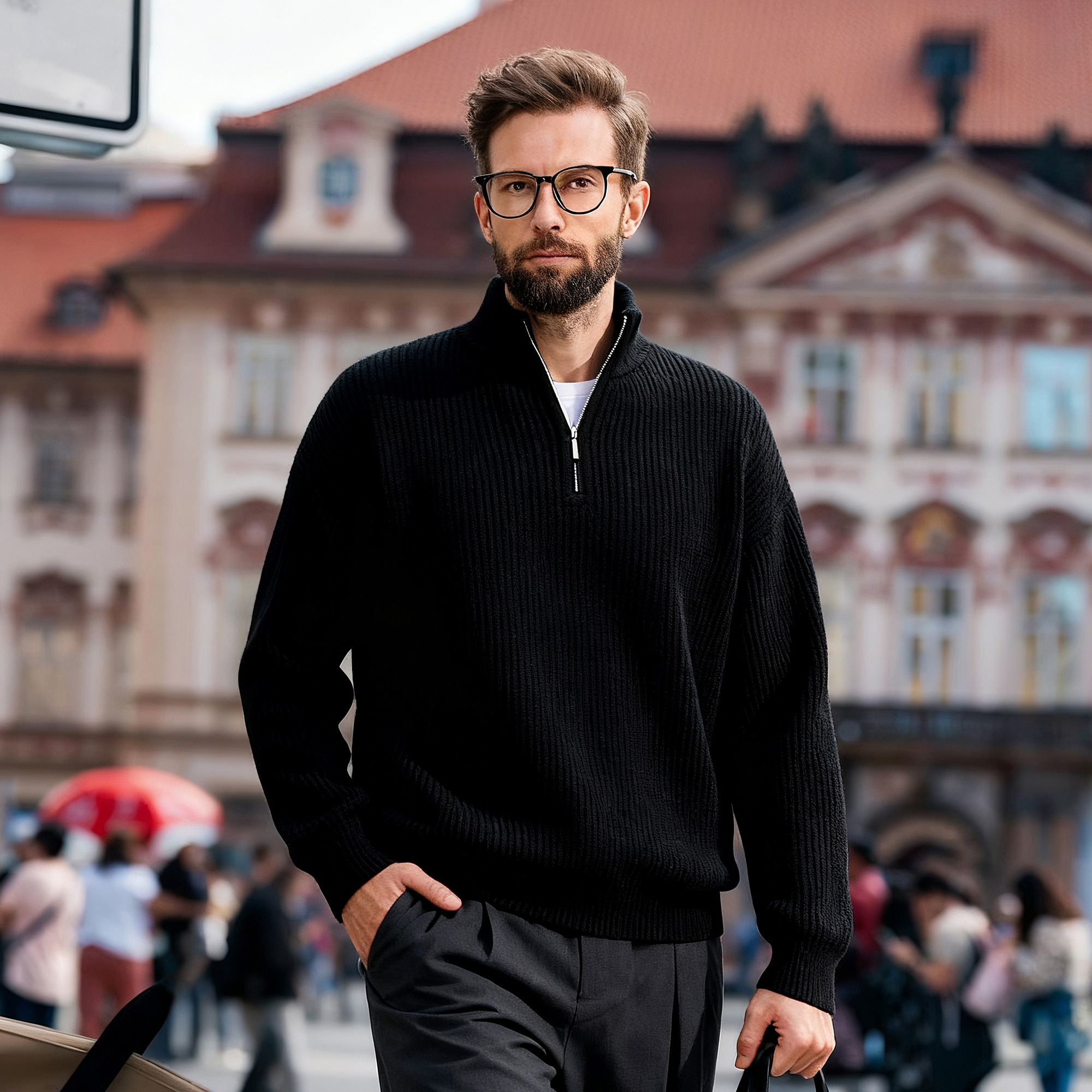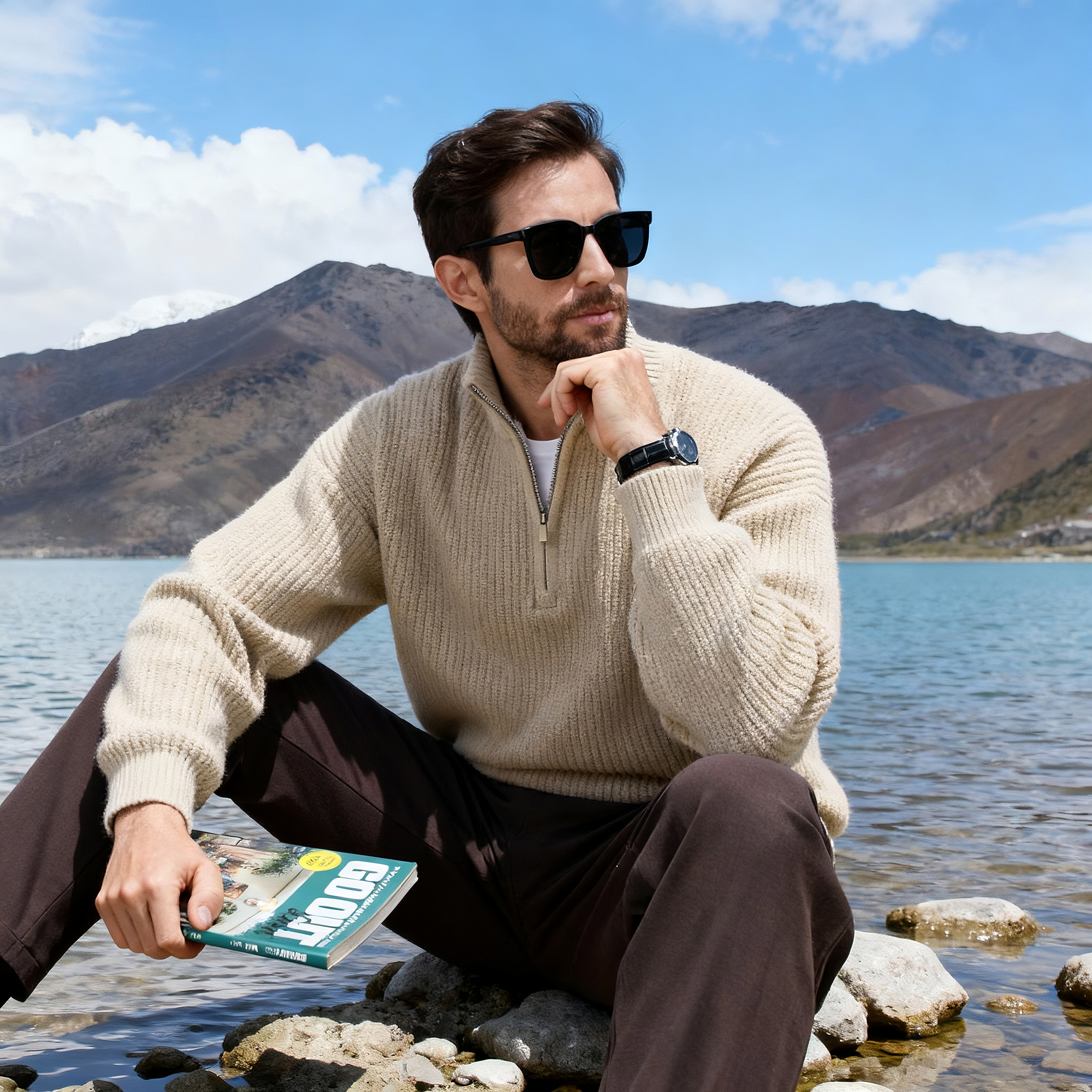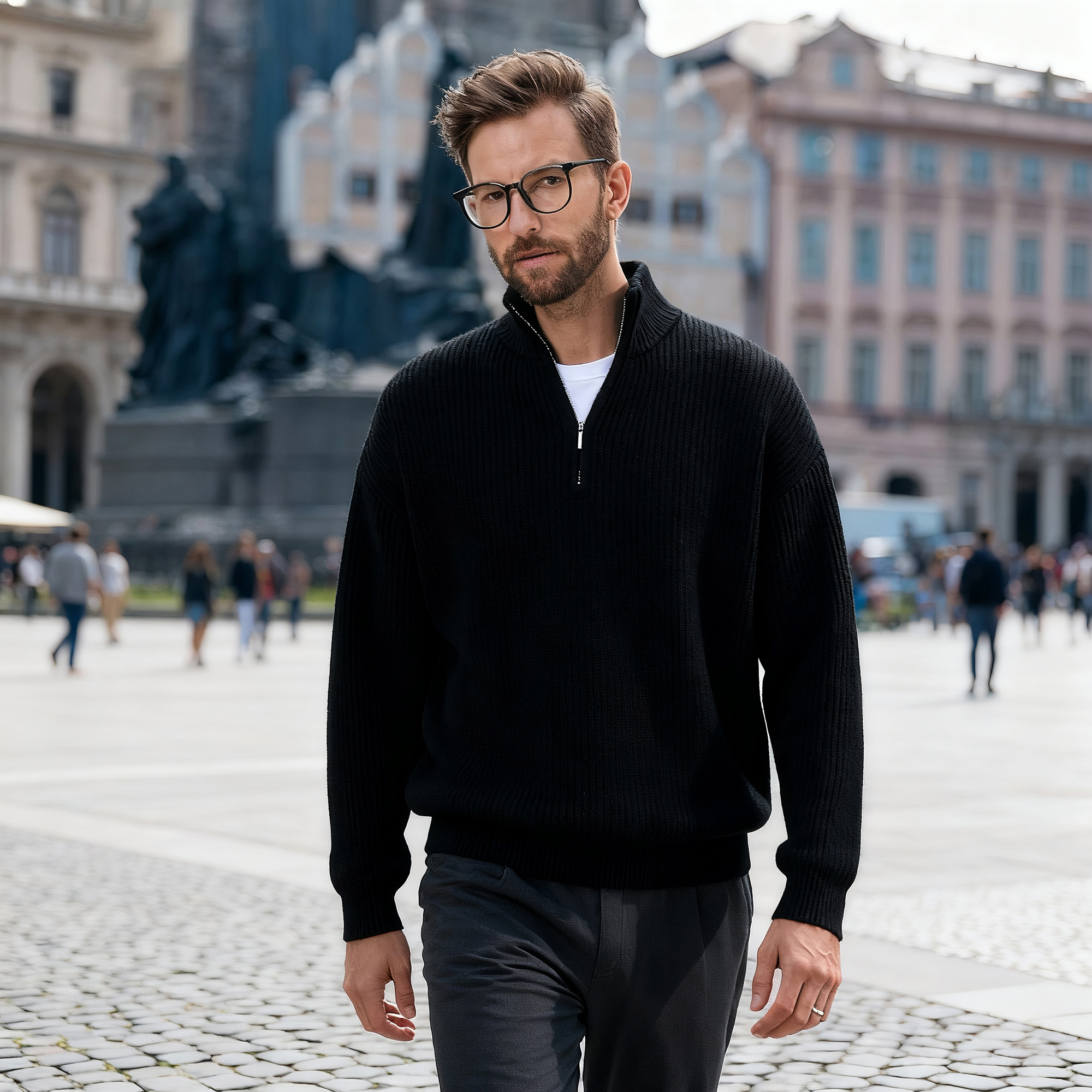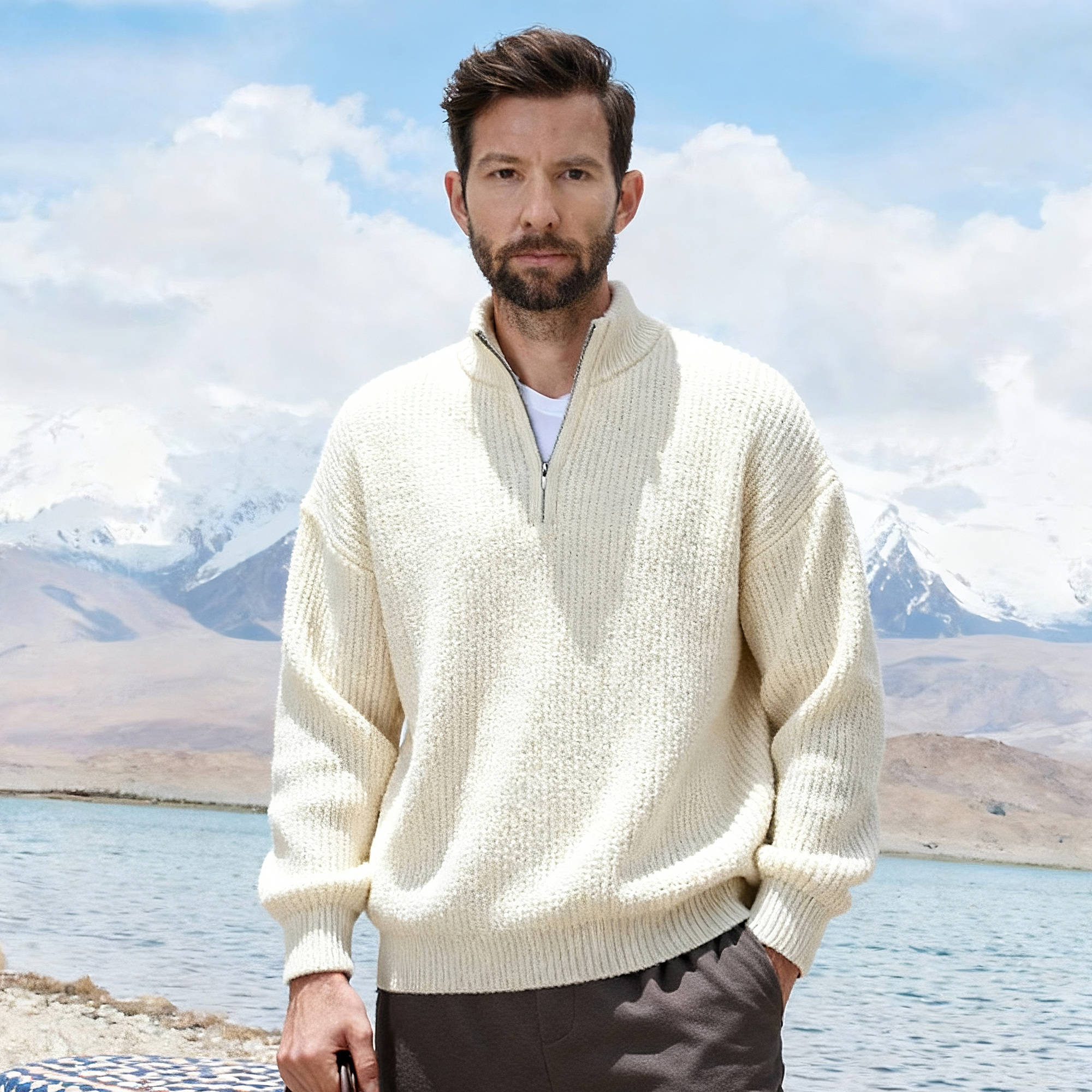 雅鹿半高领毛衣男拉链2025秋冬套头上衣男士老钱风cleanfit打底衫