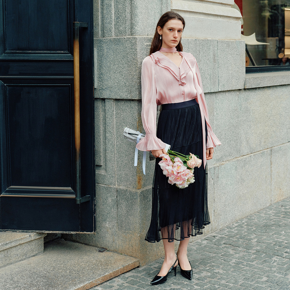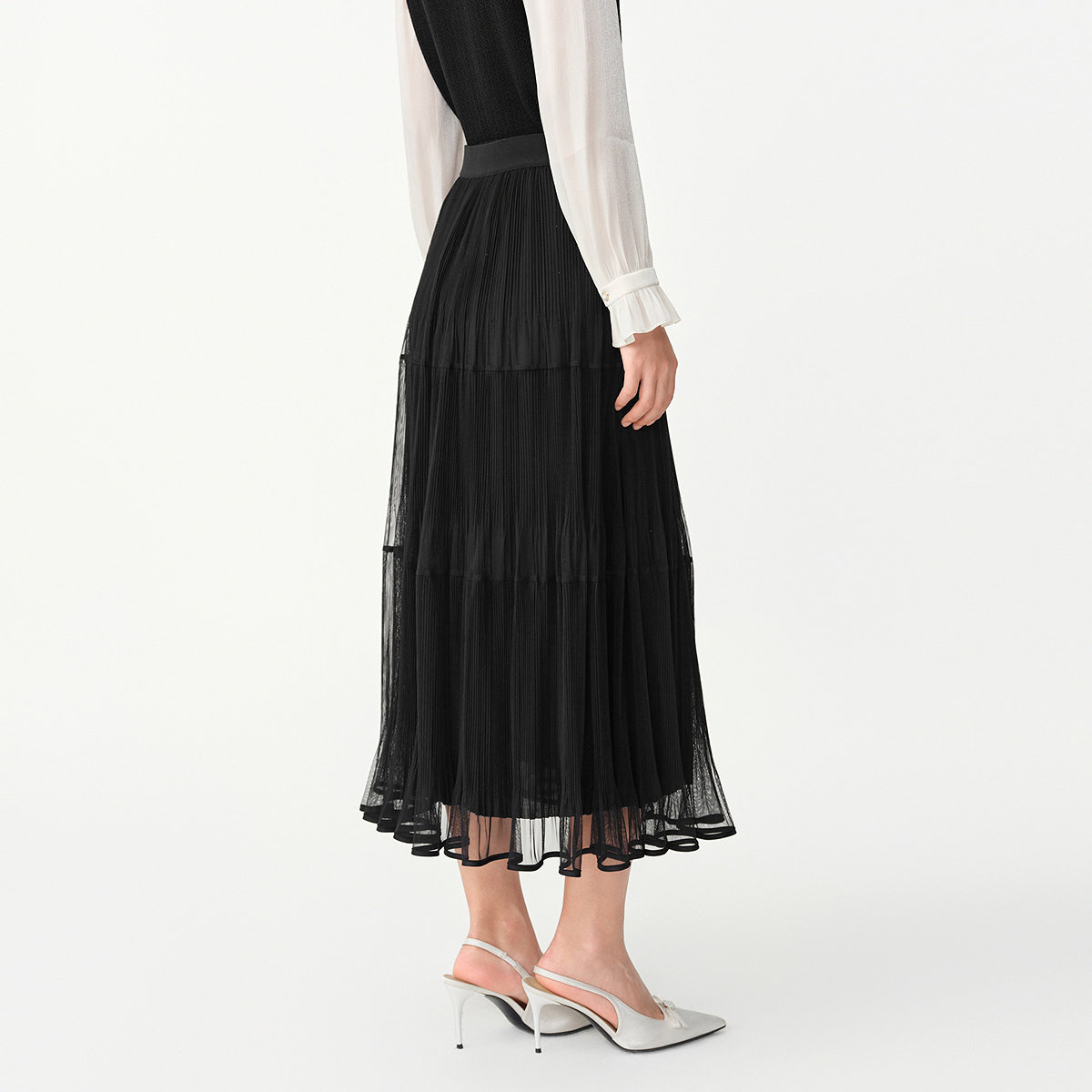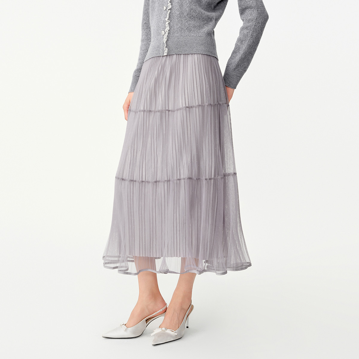 珂莱蒂尔垂感百褶a字半身裙子中长款浪漫网纱裙2026年春新款