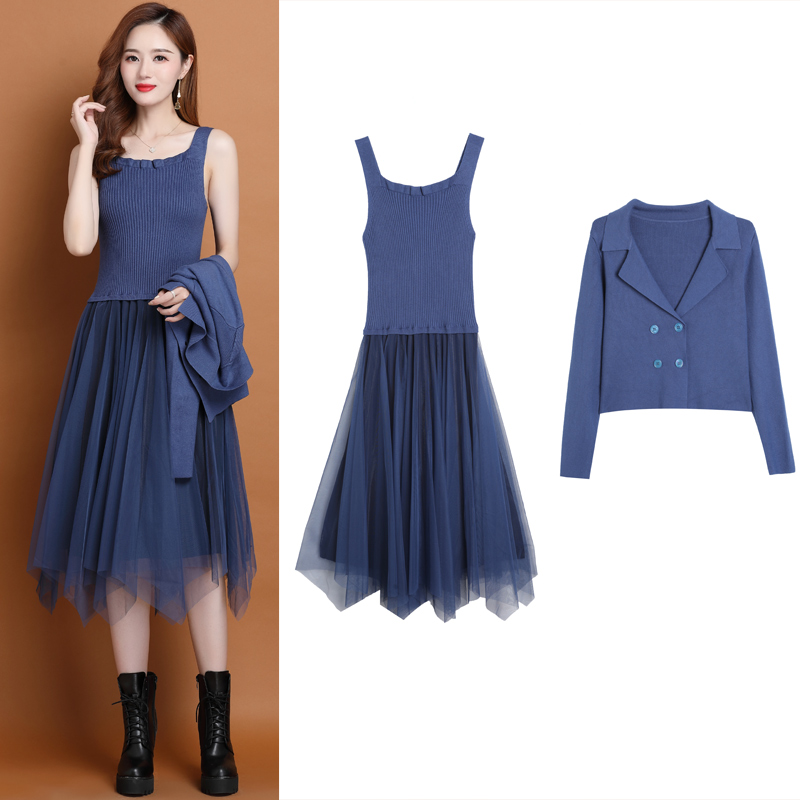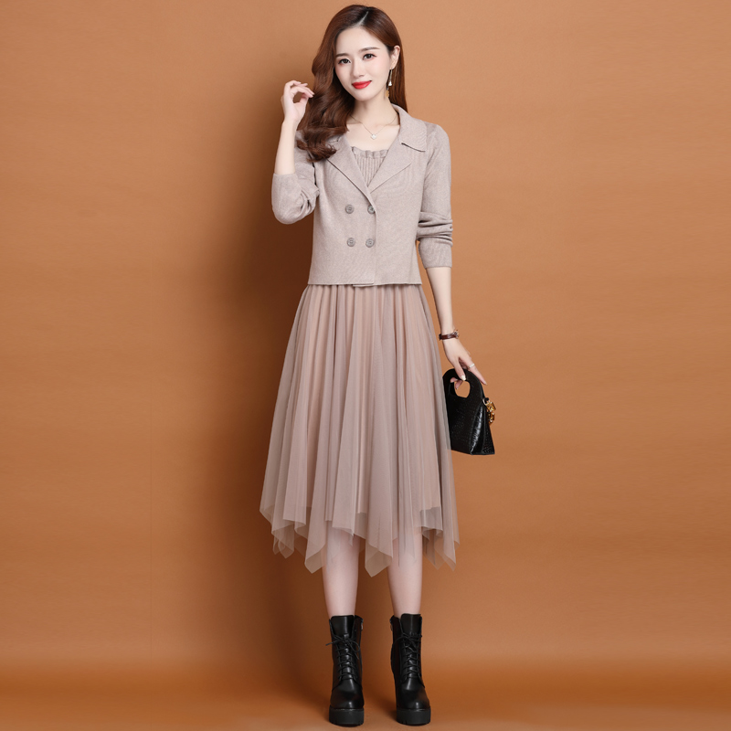 针织连衣裙女春秋季2024年新款秋款女装气质两件套装打底裙子秋冬