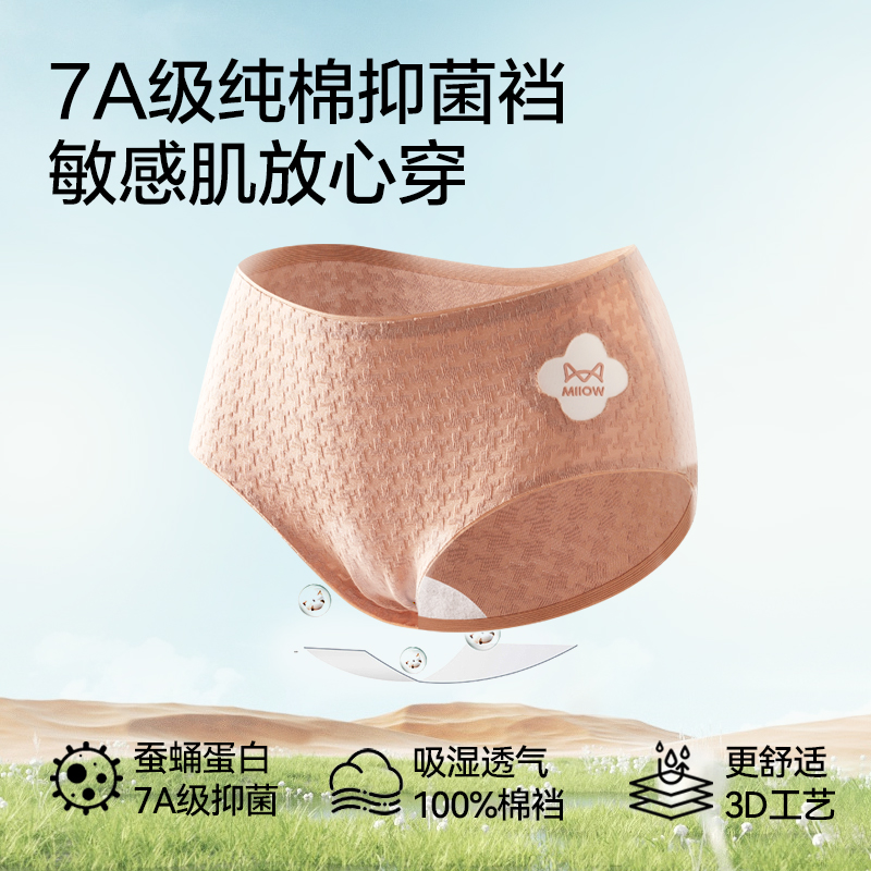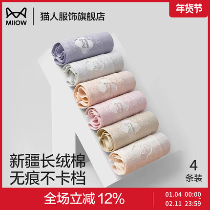【折】猫人内裤女士纯棉无痕透气中腰桑蚕丝抑菌裆女生三角裤短裤