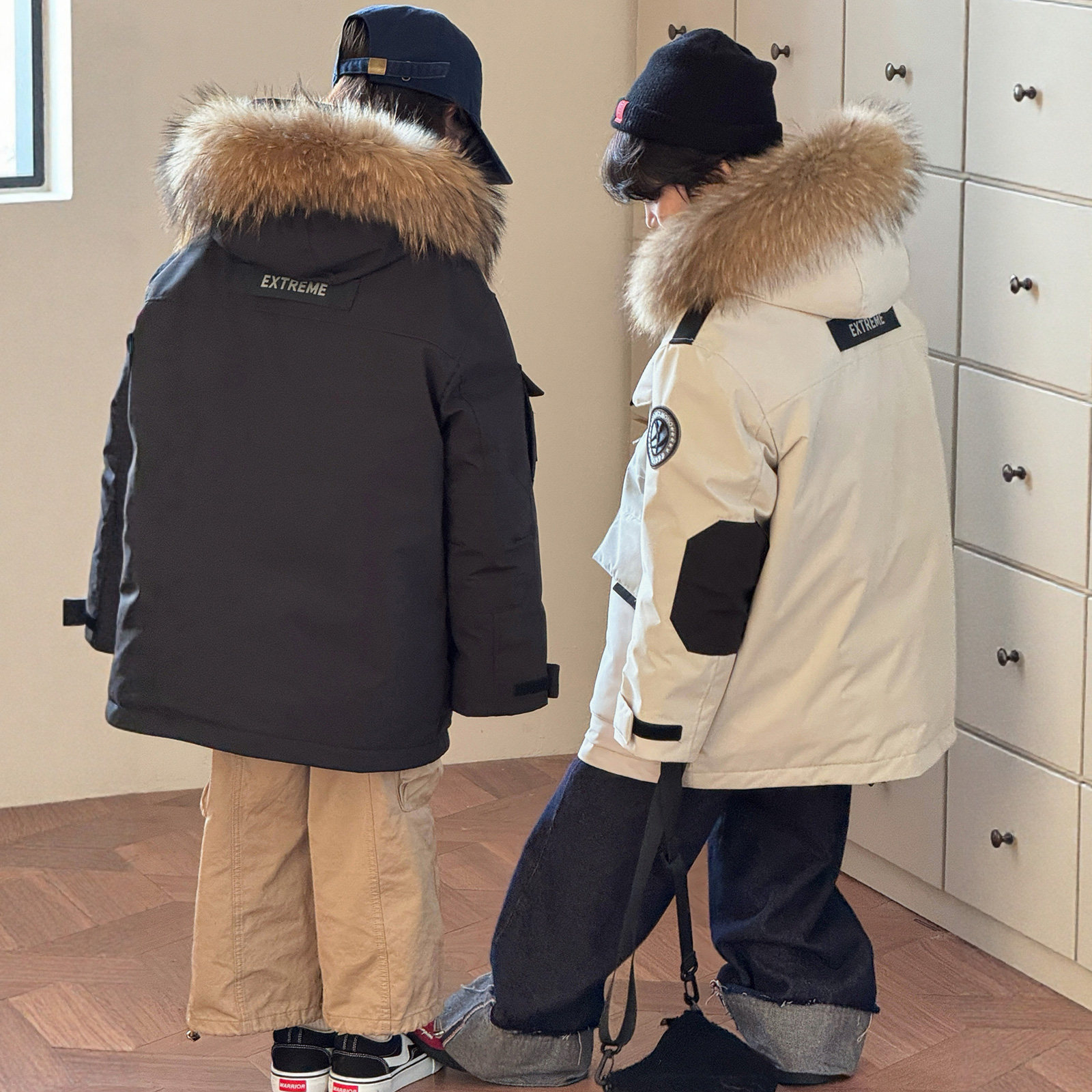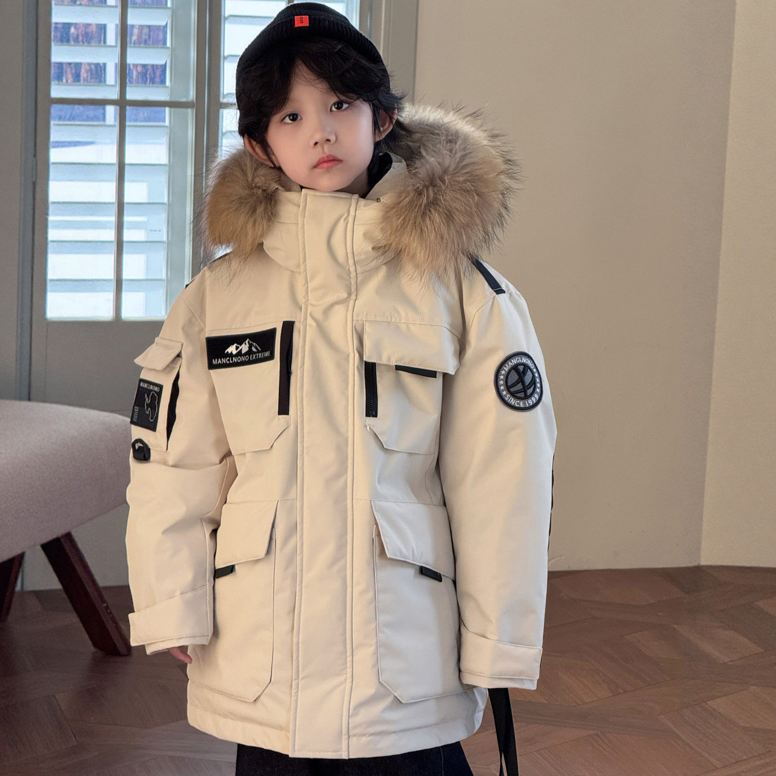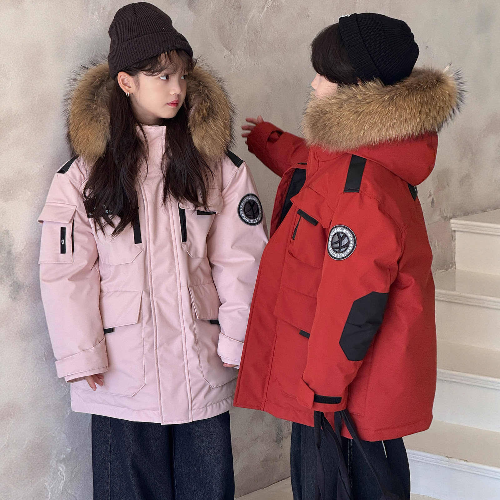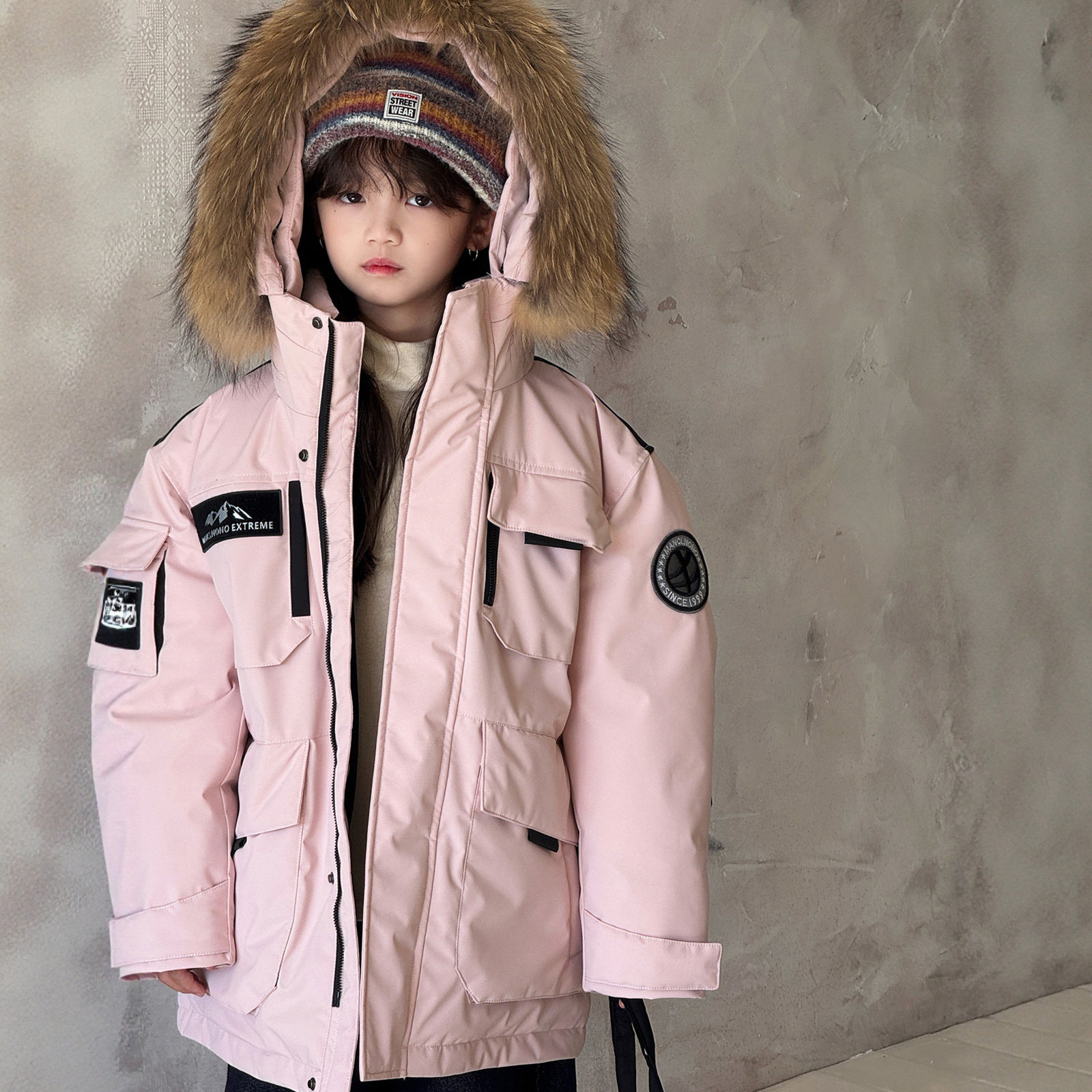 儿童工装羽绒服韩版男童女童中大童加厚连帽白鸭绒冲锋衣保暖外套