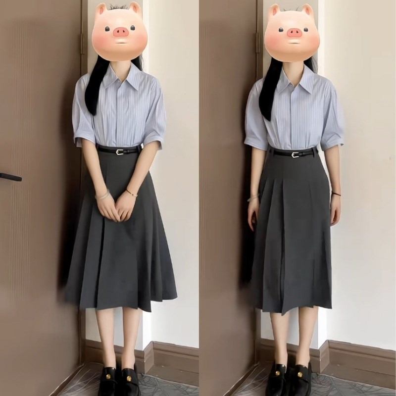 速发高级感职业套装裙夏装教资面试条纹职场通勤穿搭正装半身裙
