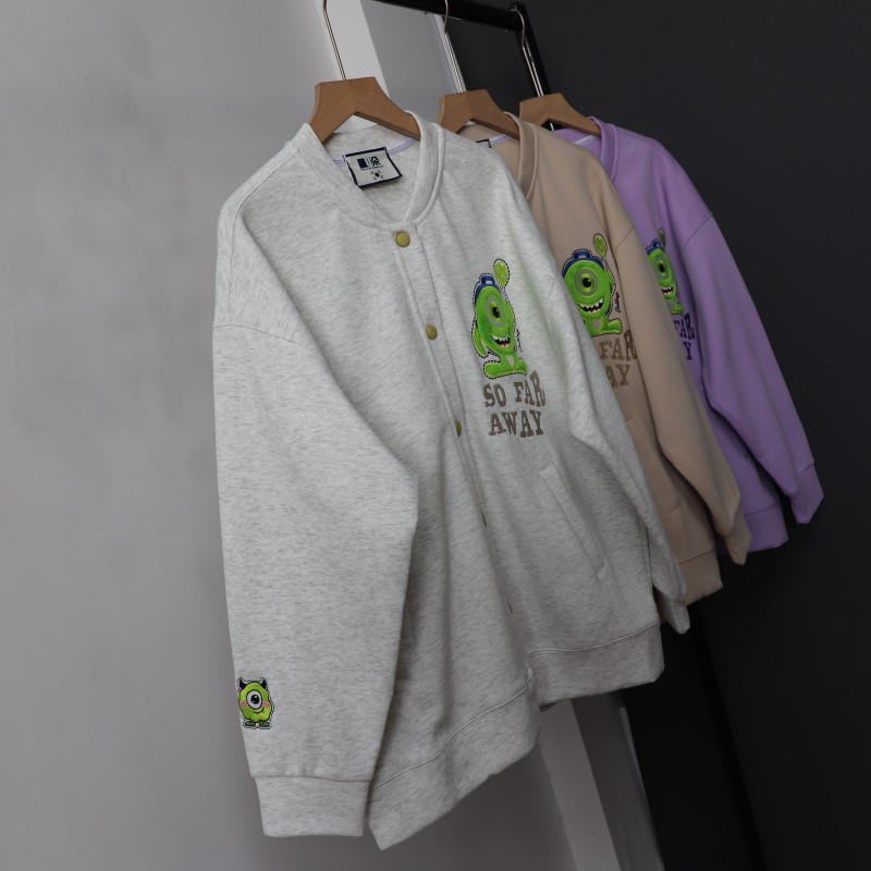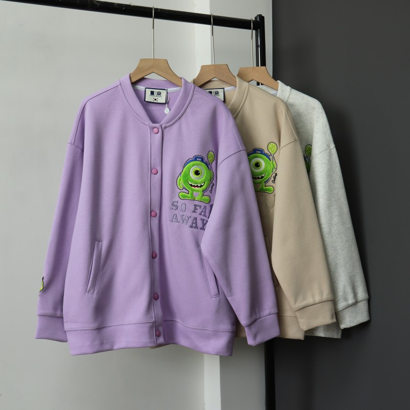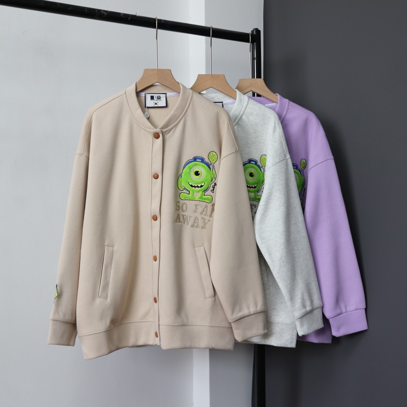 高品质女春秋新款美式趣味卡通外套毛绒独眼怪棒球服小众设计外套