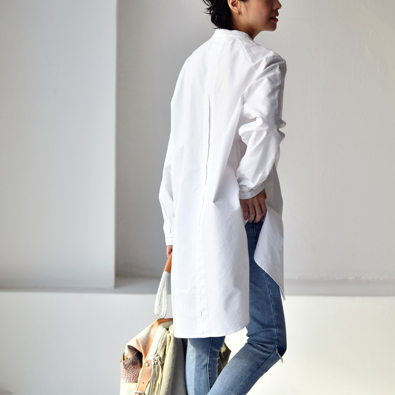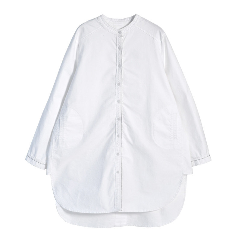 包邮C7765C通勤休闲简约气质宽松显瘦质感中长款立领长袖白衬衫女