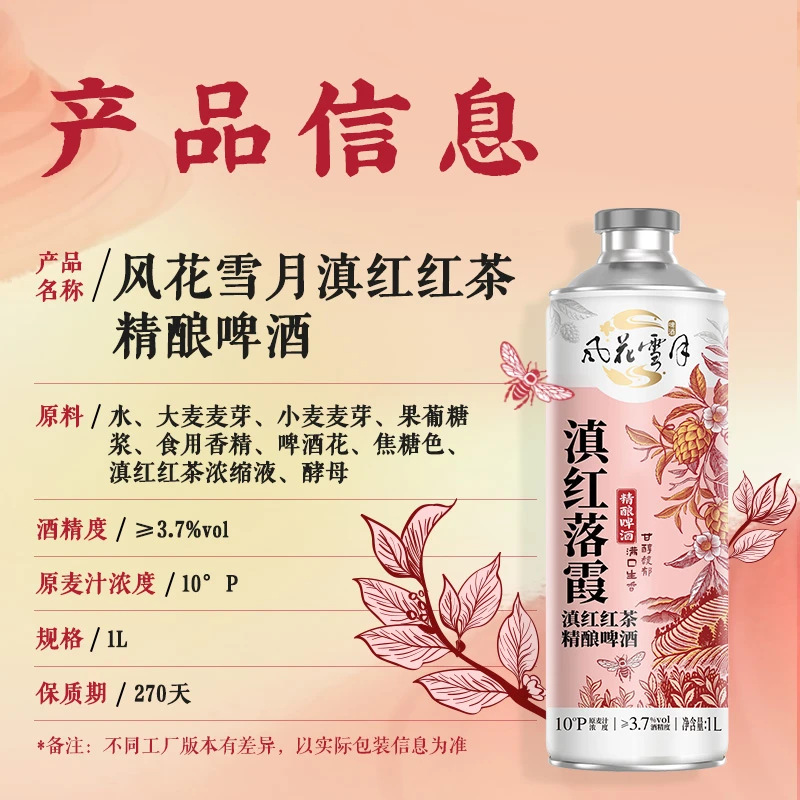 风花雪月滇红落霞1L装畅饮年会分享罐茶香麦醇厚中式精酿啤酒