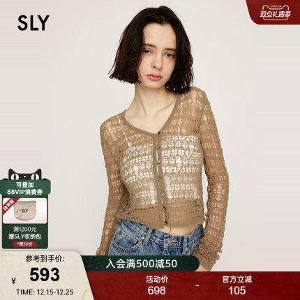 SLY 2025夏季新品轻薄V领镂空针织开衫短款小上衣女030IS470-4851