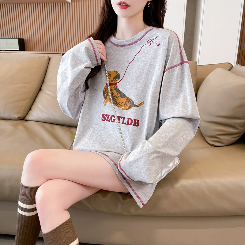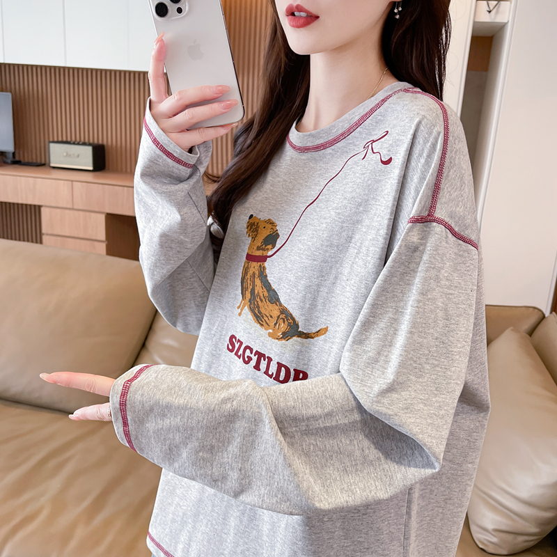 卡通印花纯棉长袖T恤女春秋季