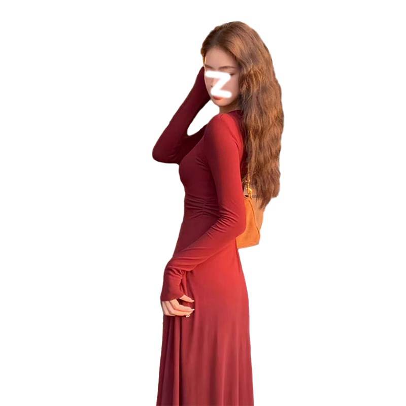 早春针织内搭打底红色连衣裙子女秋冬2024新款长裙春装战袍拜年服
