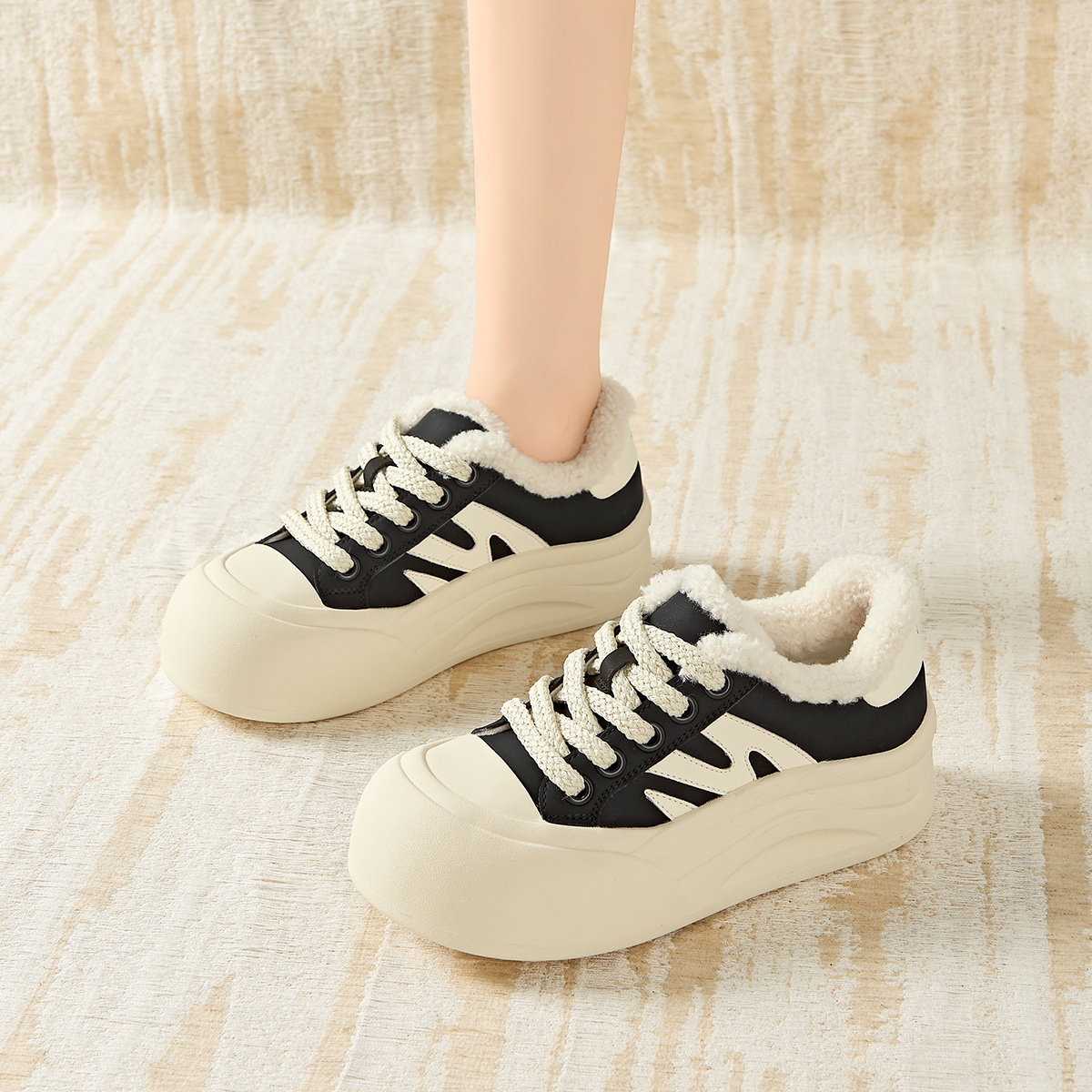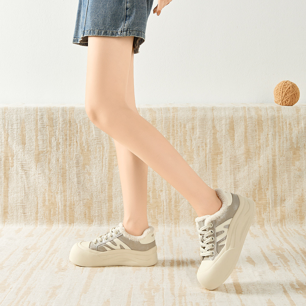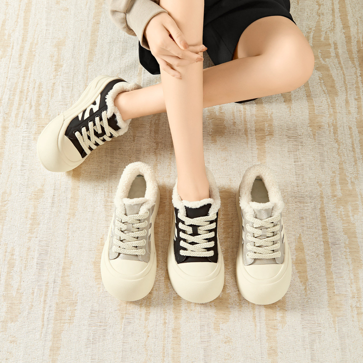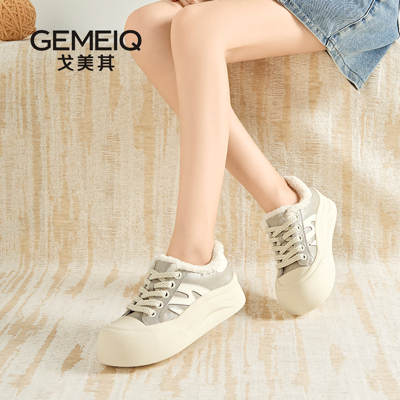 戈美其毛毛板鞋加绒保暖厚底休闲鞋增高时尚棉鞋商场同款面包鞋女