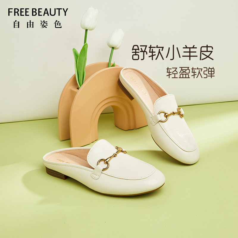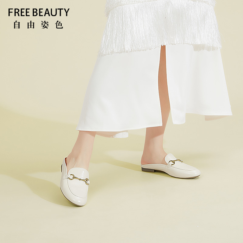 自由姿色包头拖鞋女春夏季新款时尚马衔扣平底一脚蹬穆勒拖女