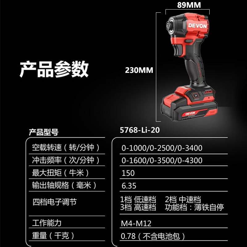大有20V无刷冲击起子机5768可调速150牛米大扭力多功能电动螺丝刀