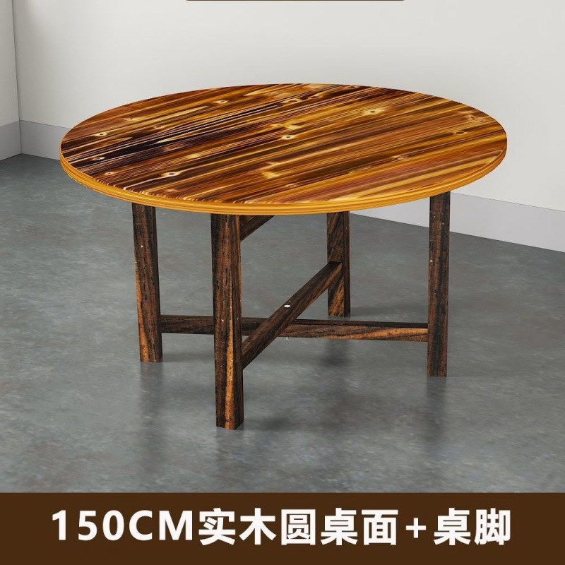 hpy3中式实木餐桌椅组合吃饭桌子圆形家用大圆桌饭店酒店烧烤碳化