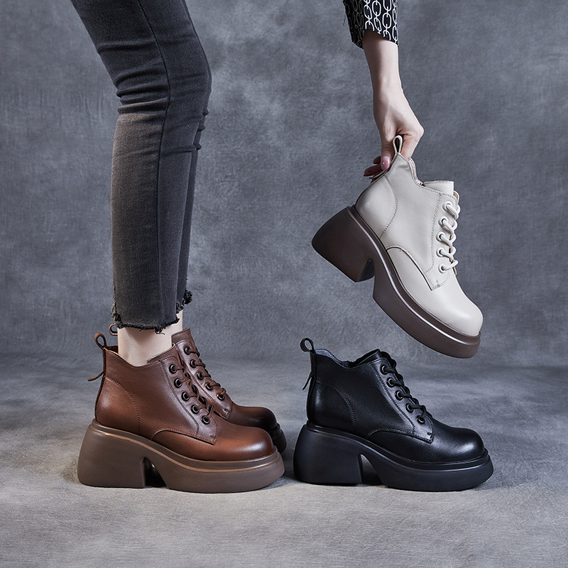 厚底真皮马丁靴女2025年秋冬圆头粗跟增高显瘦时尚百搭英伦短靴白
