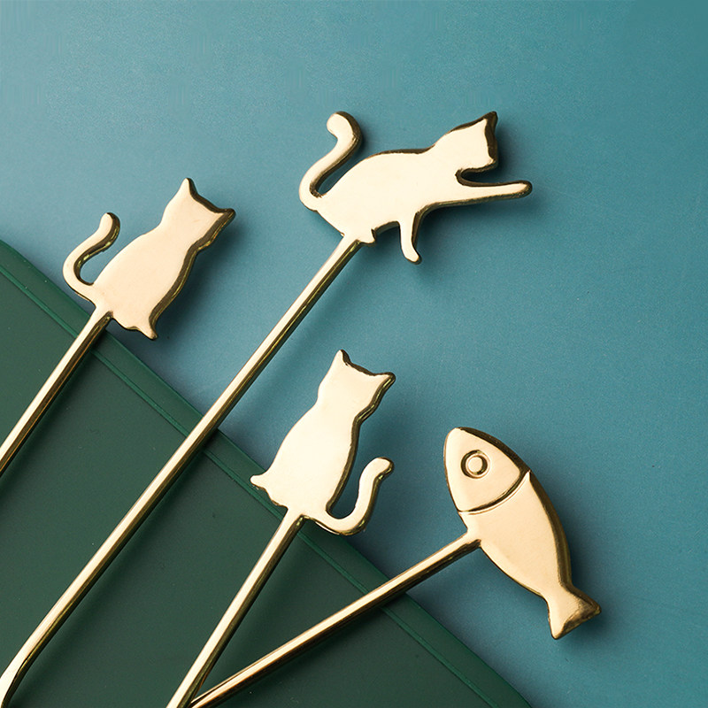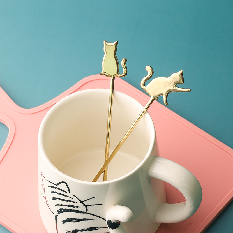 创意甜品勺小猫勺小鱼勺 304不锈钢卡通勺子短柄甜品搅拌勺咖啡勺