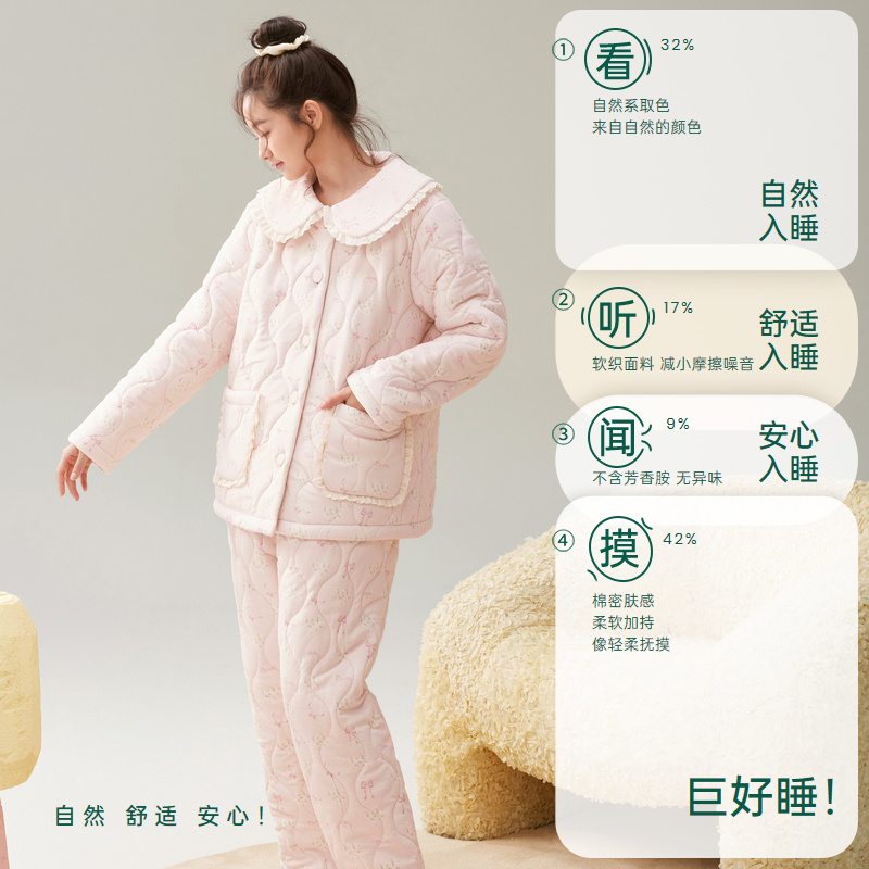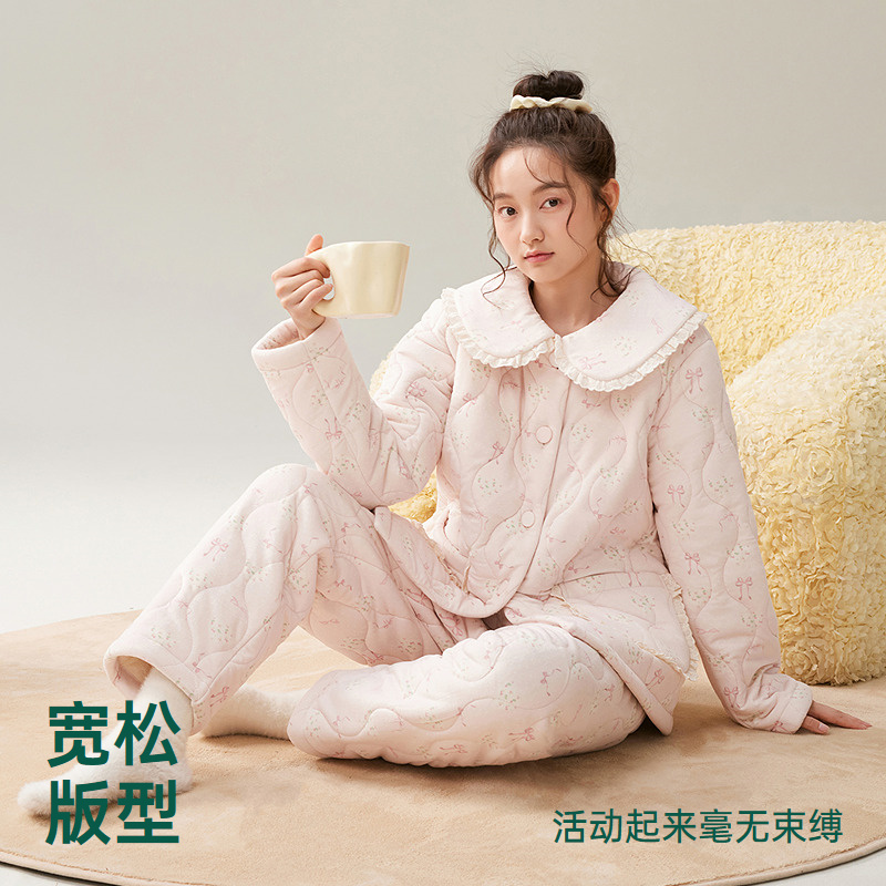 安之伴【巨保暖】睡衣女三层加厚夹棉袄冬季冬款珊瑚绒可爱家居服