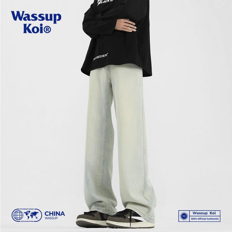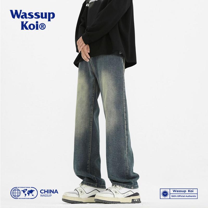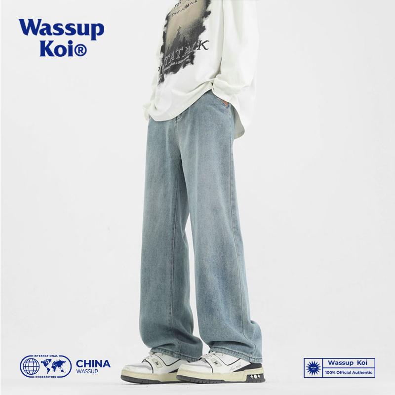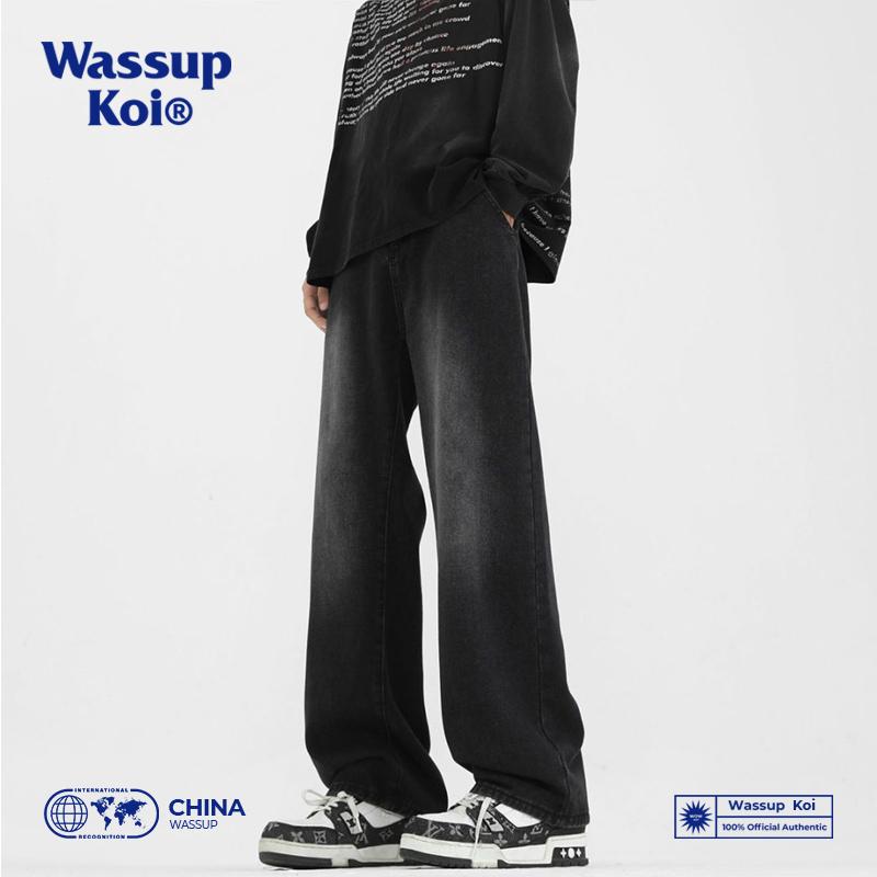 WASSUPKOI潮牌水洗直筒牛仔裤男