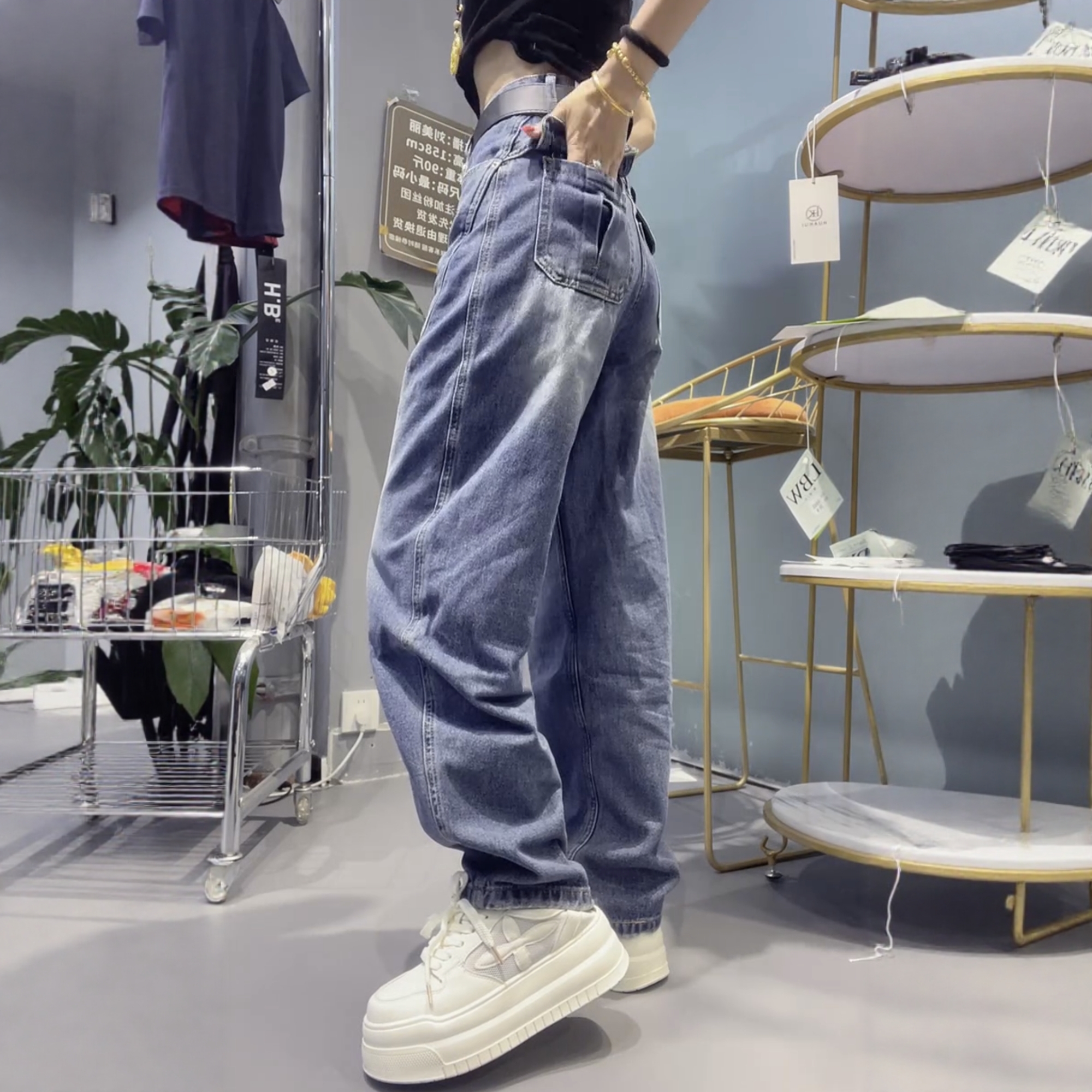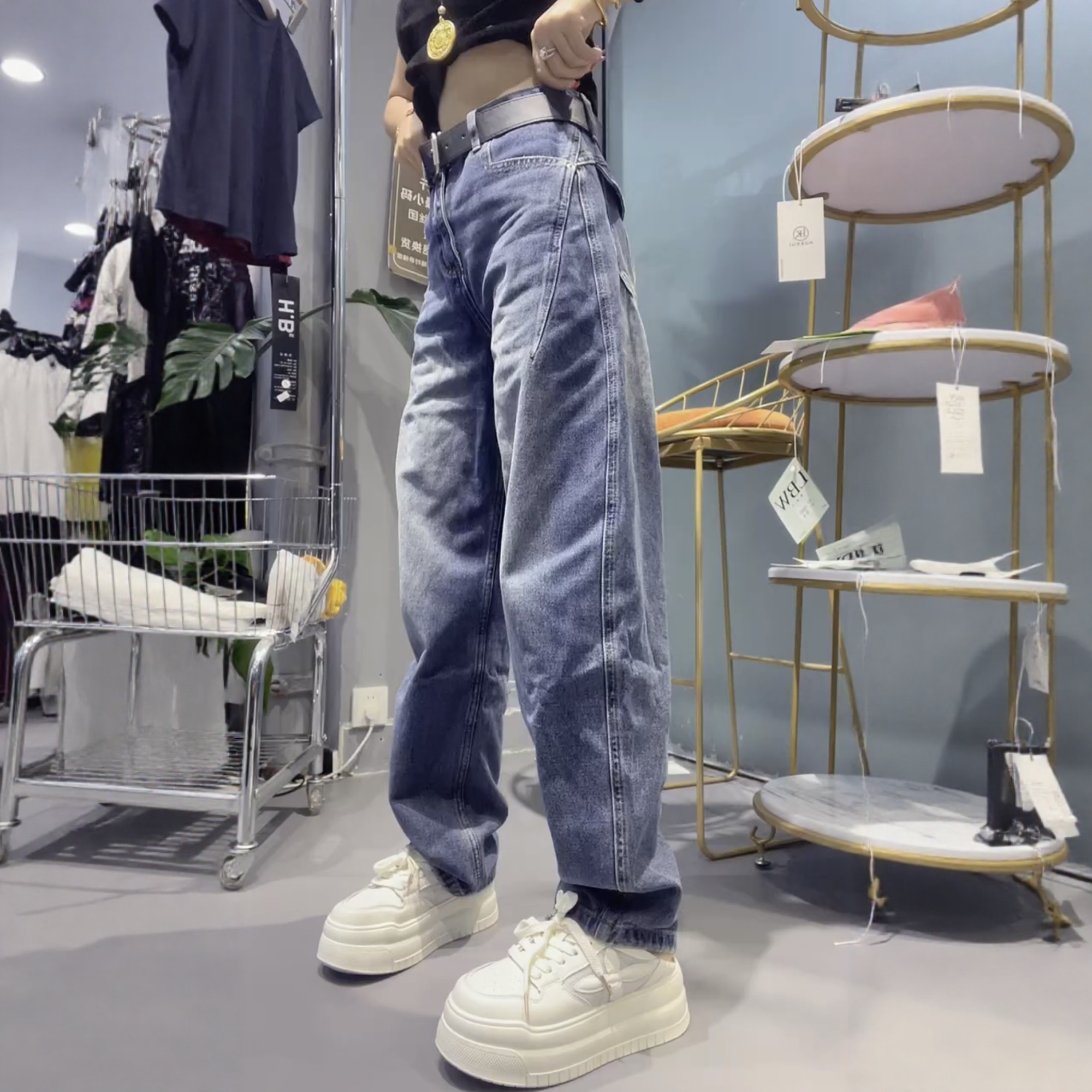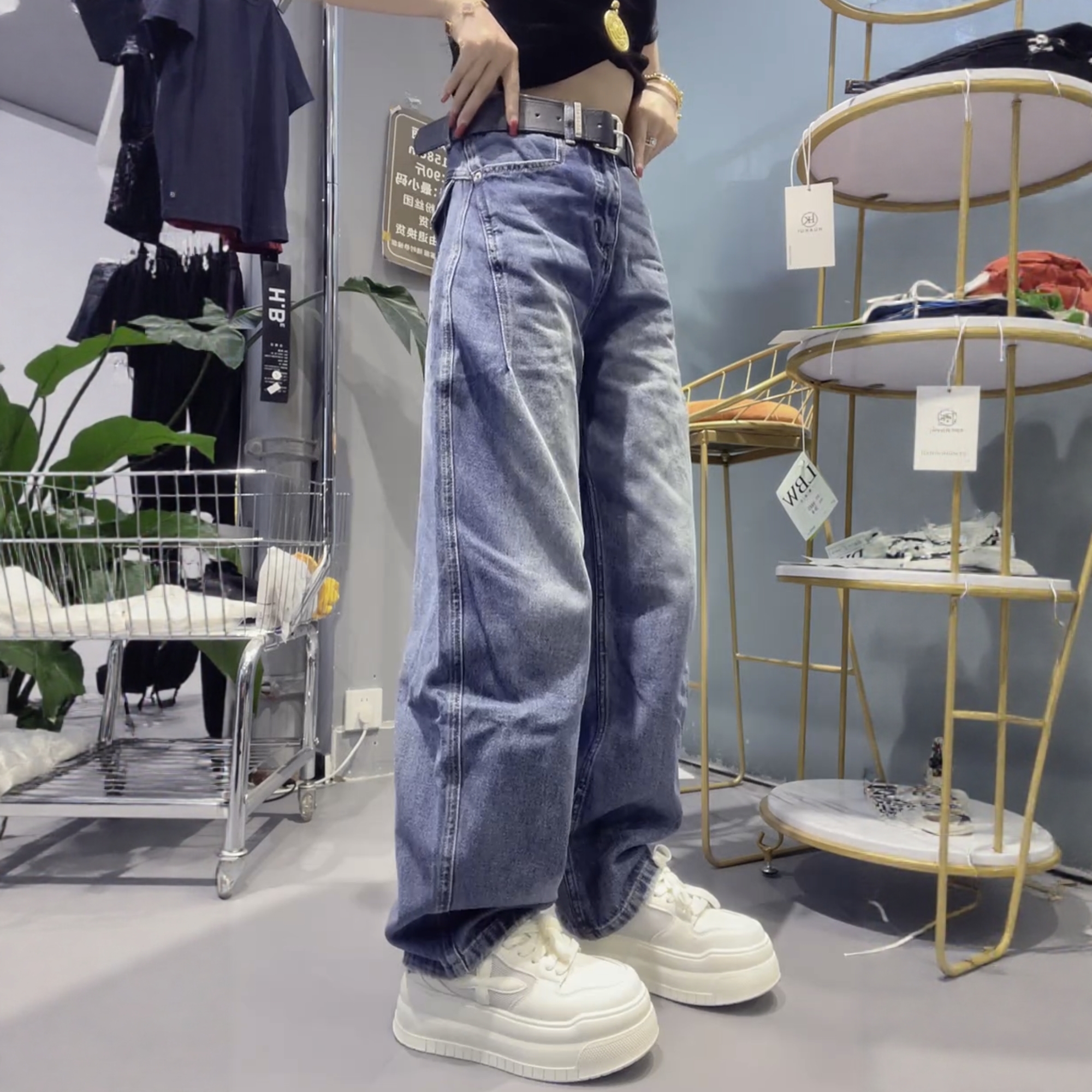 高腰直筒牛仔裤女2025新款秋季宽松显瘦长裤大码复古蓝色直筒裤