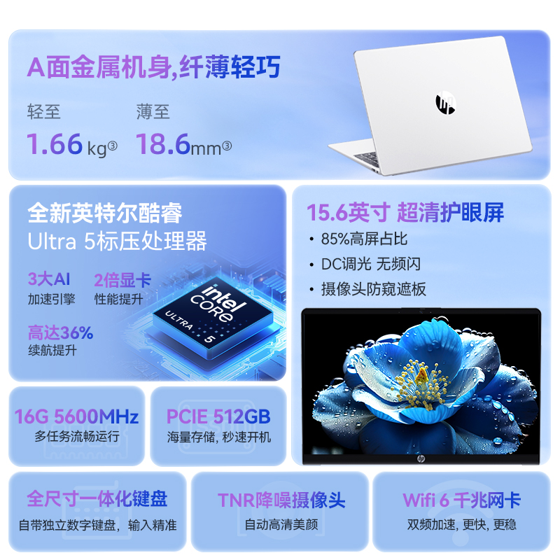 【双11直降】HP/惠普可选星book15 英特尔酷睿Ultra5 125H轻薄惠普笔记本电脑轻薄星bookpro商务本官方正品