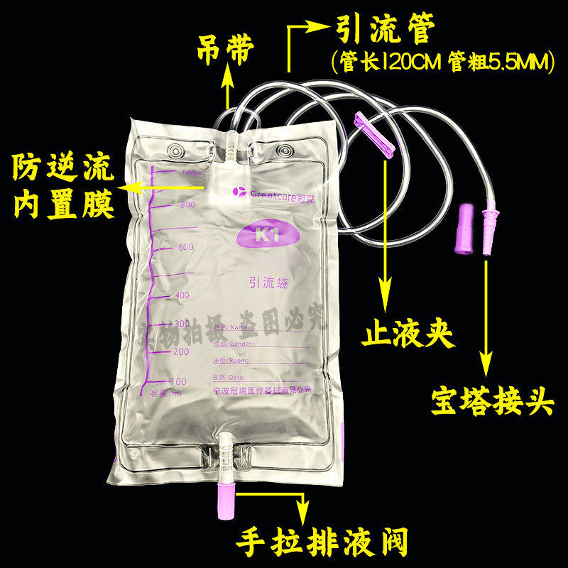 冠克引流袋宝塔接头防逆流集尿袋男用女用接尿器导尿1000ML