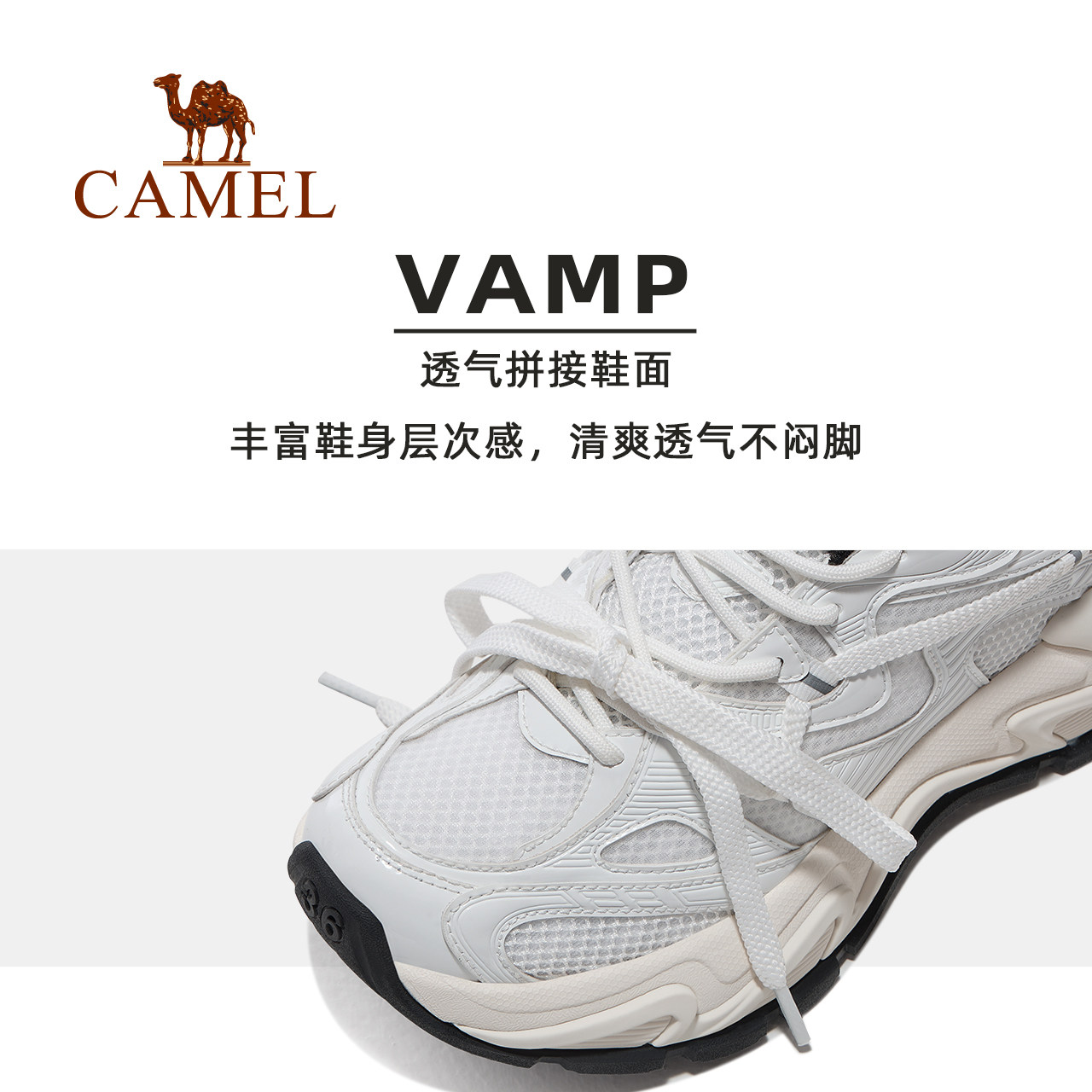 骆驼厚底小白鞋女款运动鞋2025新款透气百搭增高老爹鞋男休闲鞋子