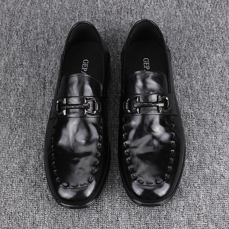 头层牛皮男鞋春季2025韩版透气休闲皮鞋英伦潮鞋一脚蹬商务发型师
