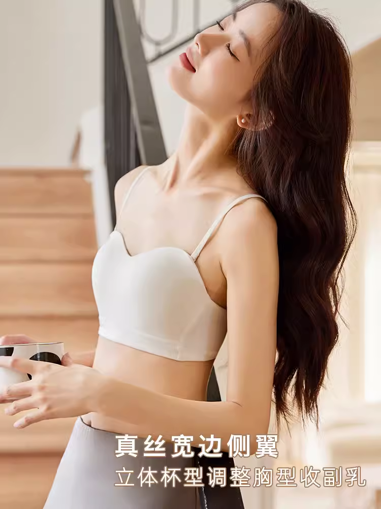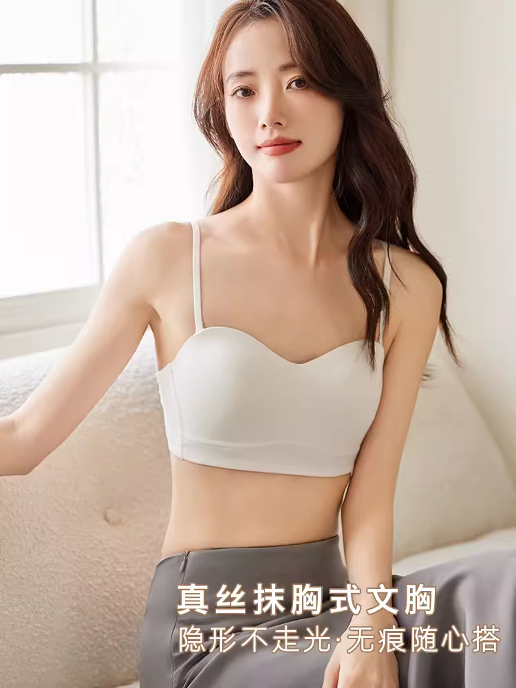 真丝抹胸内衣女一片式无痕大胸显小无肩带裹胸无钢圈防走光文胸
