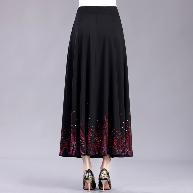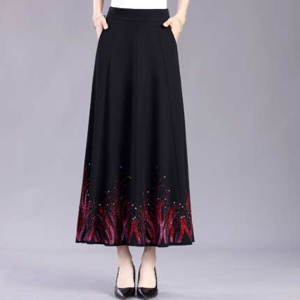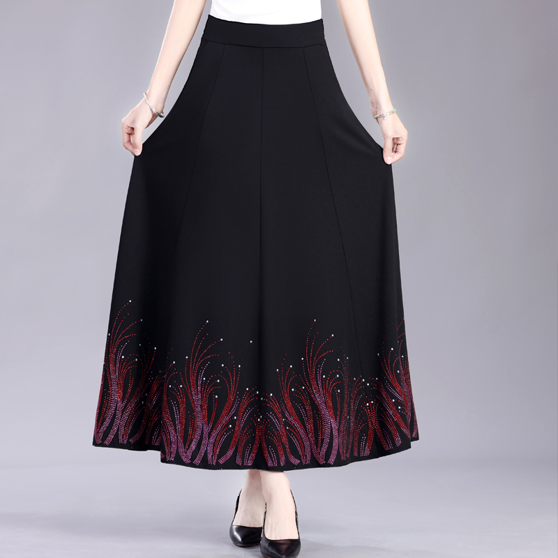 春秋夏新款半身裙中年妈妈女中长款高腰显瘦百搭大摆A字裙烫钻裙