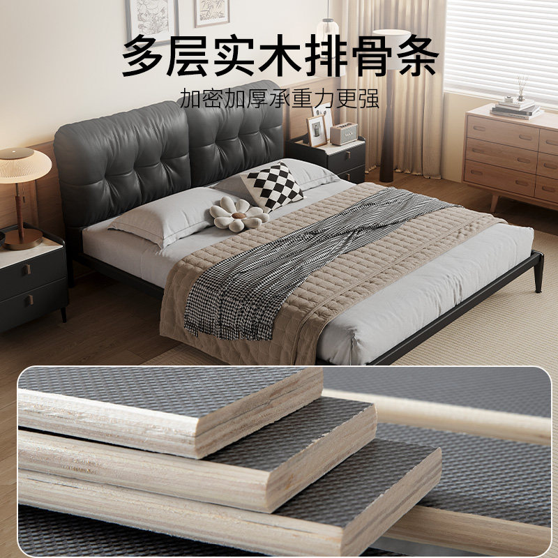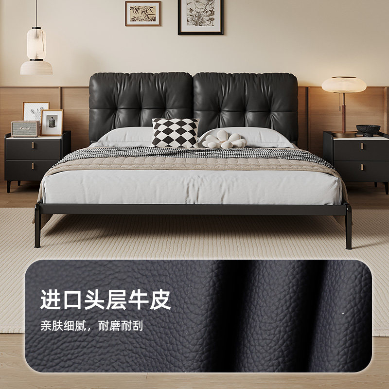 慕思官方旗舰店真皮床现代简约双人大床大象耳朵床主卧高奢大靠包