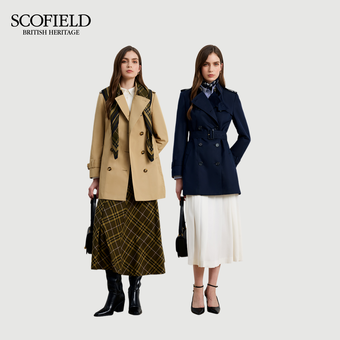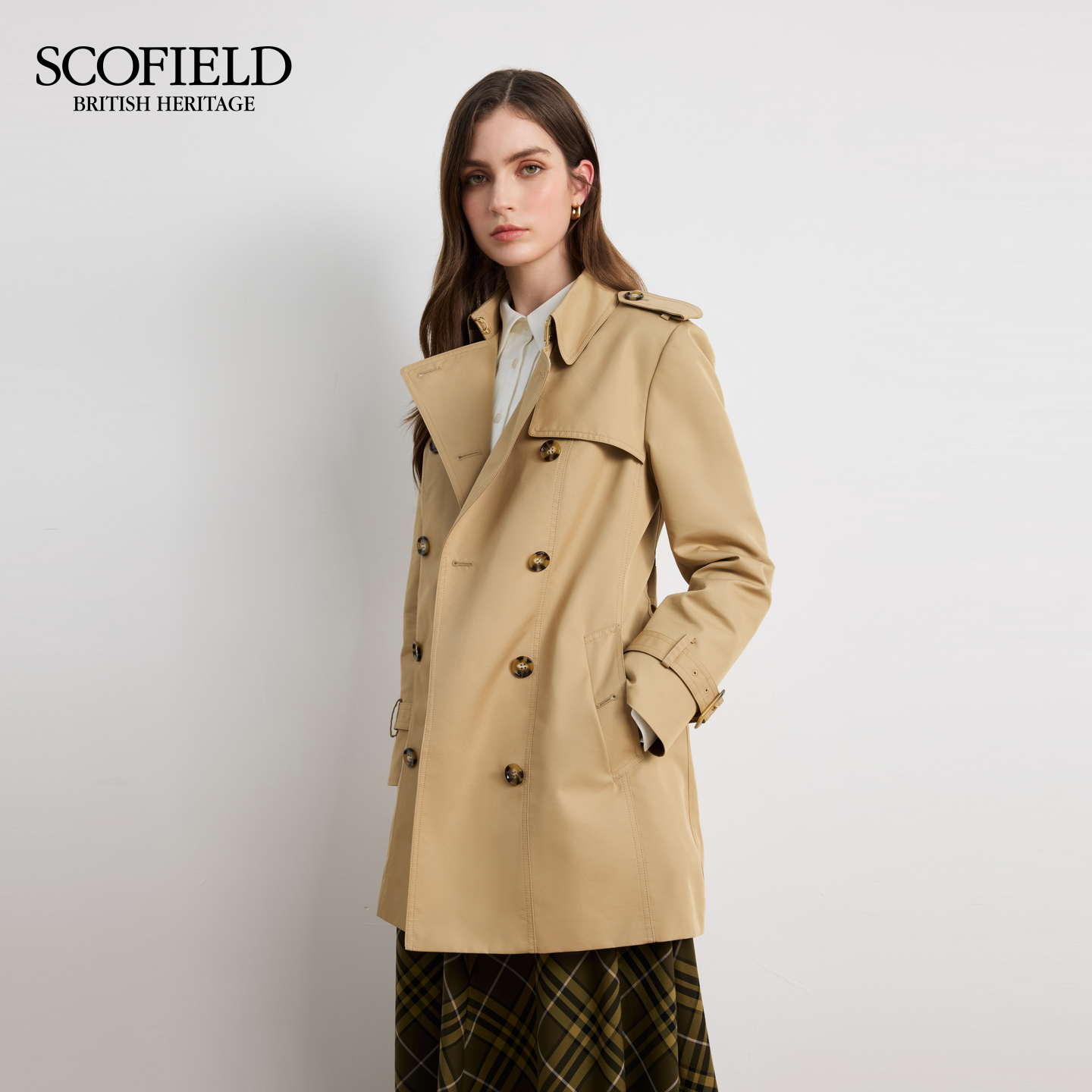 【含棉+防泼水】Scofield女中长款收腰双排扣风衣外套2025秋新品
