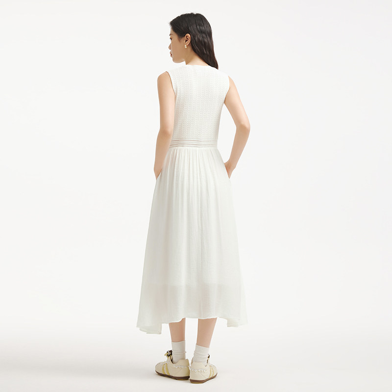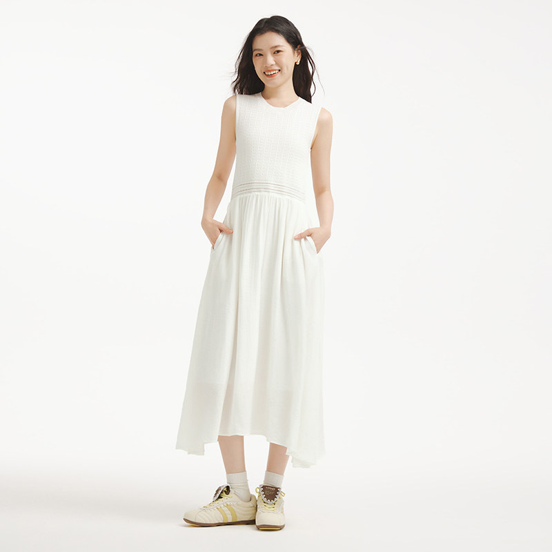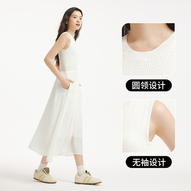 热风无袖背心白色连衣裙2025年秋季新款女士拼接针织打底连衣裙