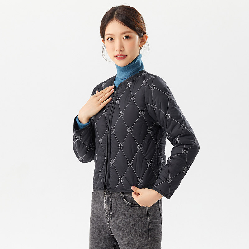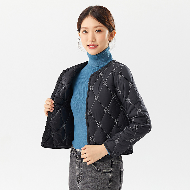 冬季薄款内胆棉衣女小棉袄短款时尚轻薄长袖羽绒棉服拉链绣花外套