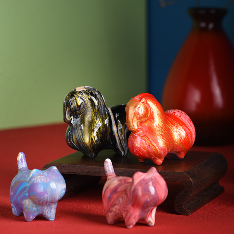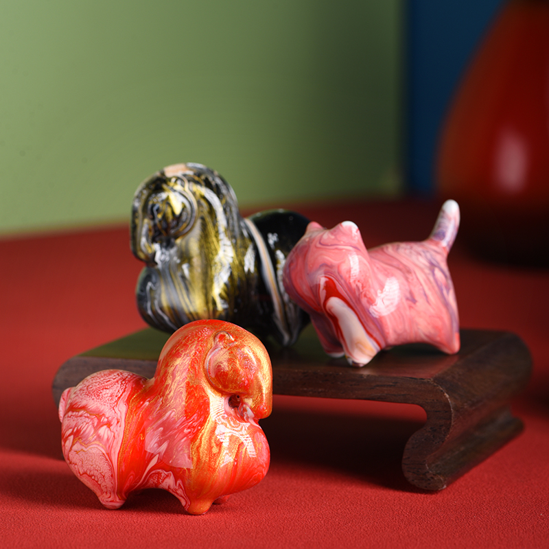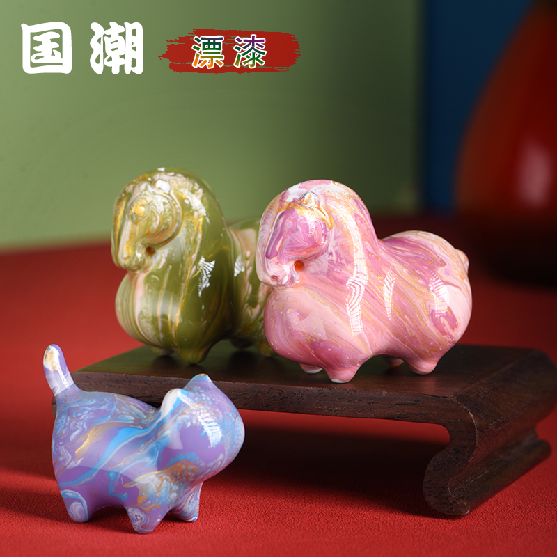 国潮大漆彩绘小唐马小猫土拨鼠漂漆摆件工艺品萌宠可爱文玩手把件