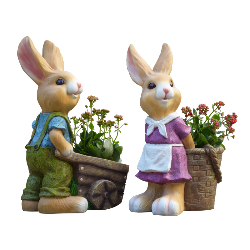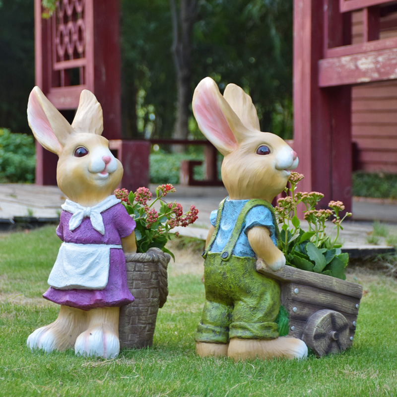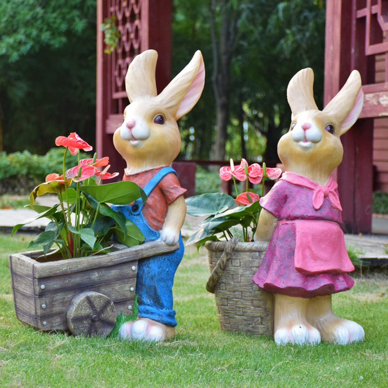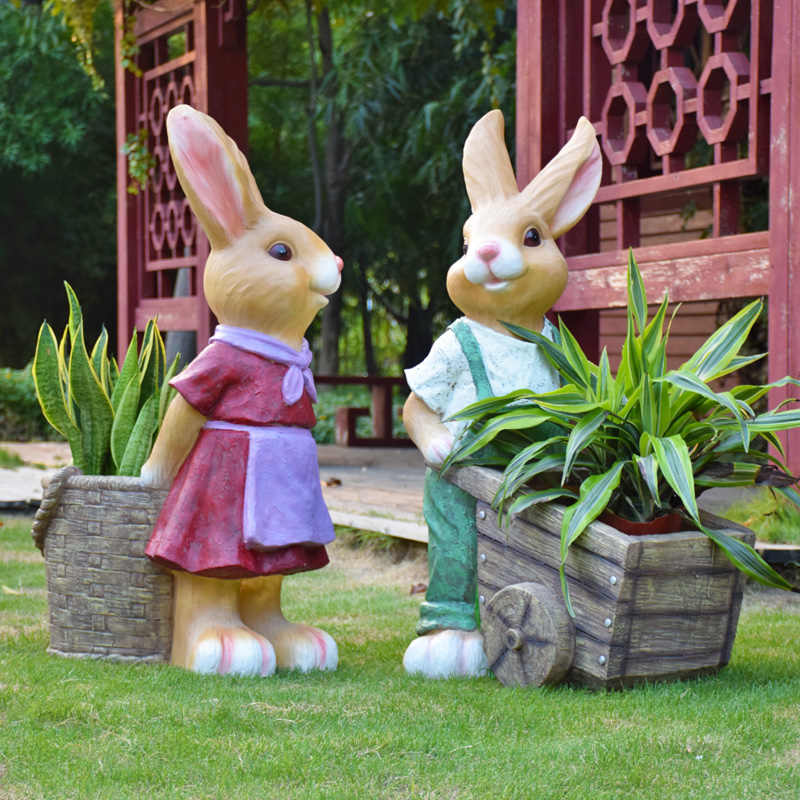花园装饰摆件庭院天台仿真卡通兔子花缸别墅小院园艺造景布置摆件