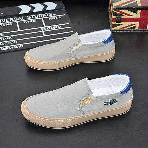 潮牌男鞋2024夏季新款低帮休闲帆布小白鞋男士透气懒人一脚蹬板鞋