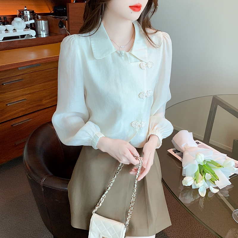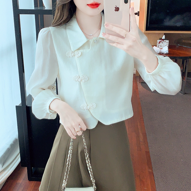 中国风盘扣气质衬衫女2025秋季新款时尚设计感不规则短款长袖上衣