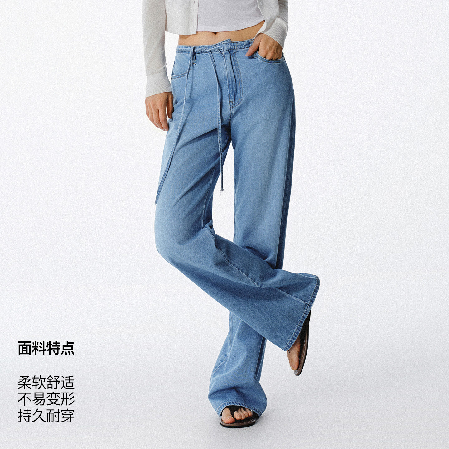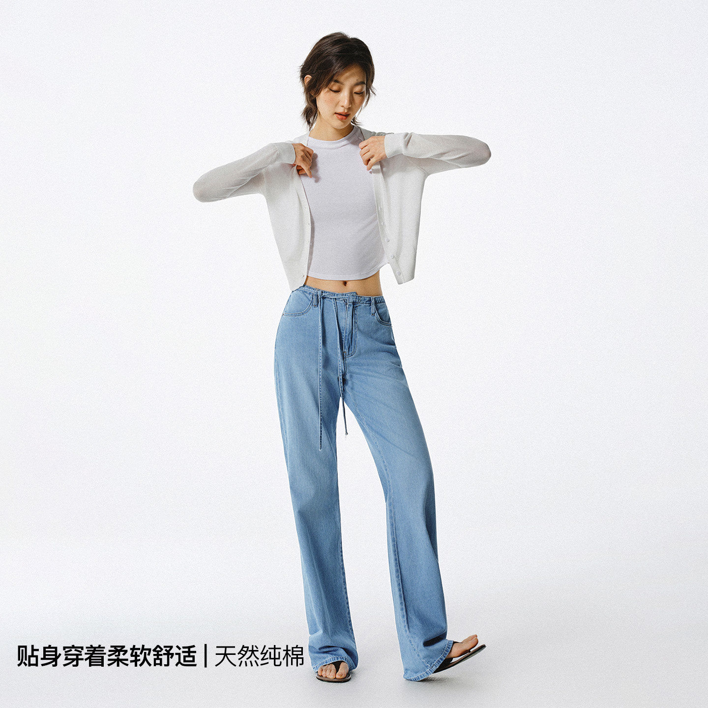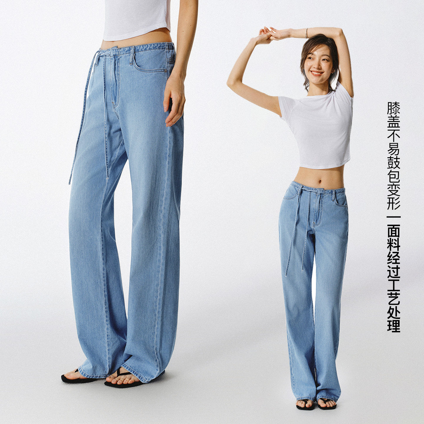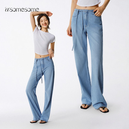 asomesome美式复古浅蓝低腰水洗牛仔裤女夏薄款休闲直筒阔腿裤