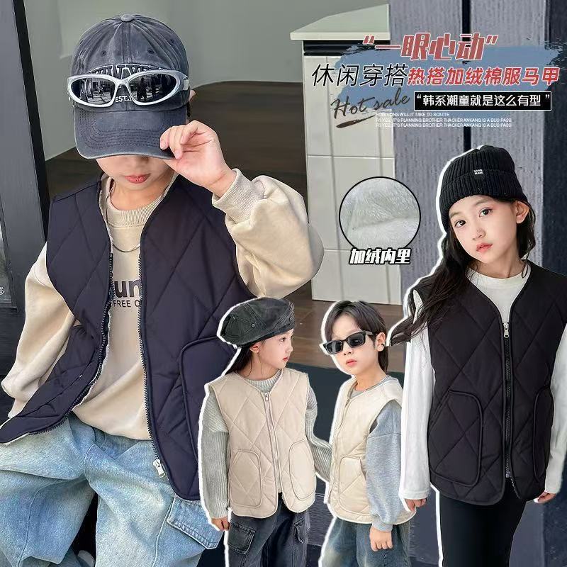 2025儿童背心马甲加绒秋冬内穿外搭男女童夹棉中大童冬季轻薄保暖