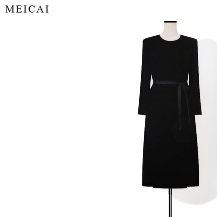 美裁 黑丝绒 新款加密真丝绒顺滑光感简约圆领长袖连衣裙