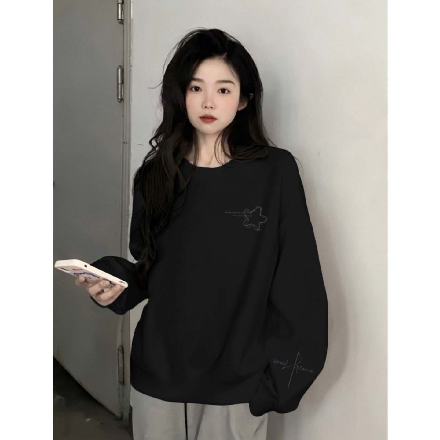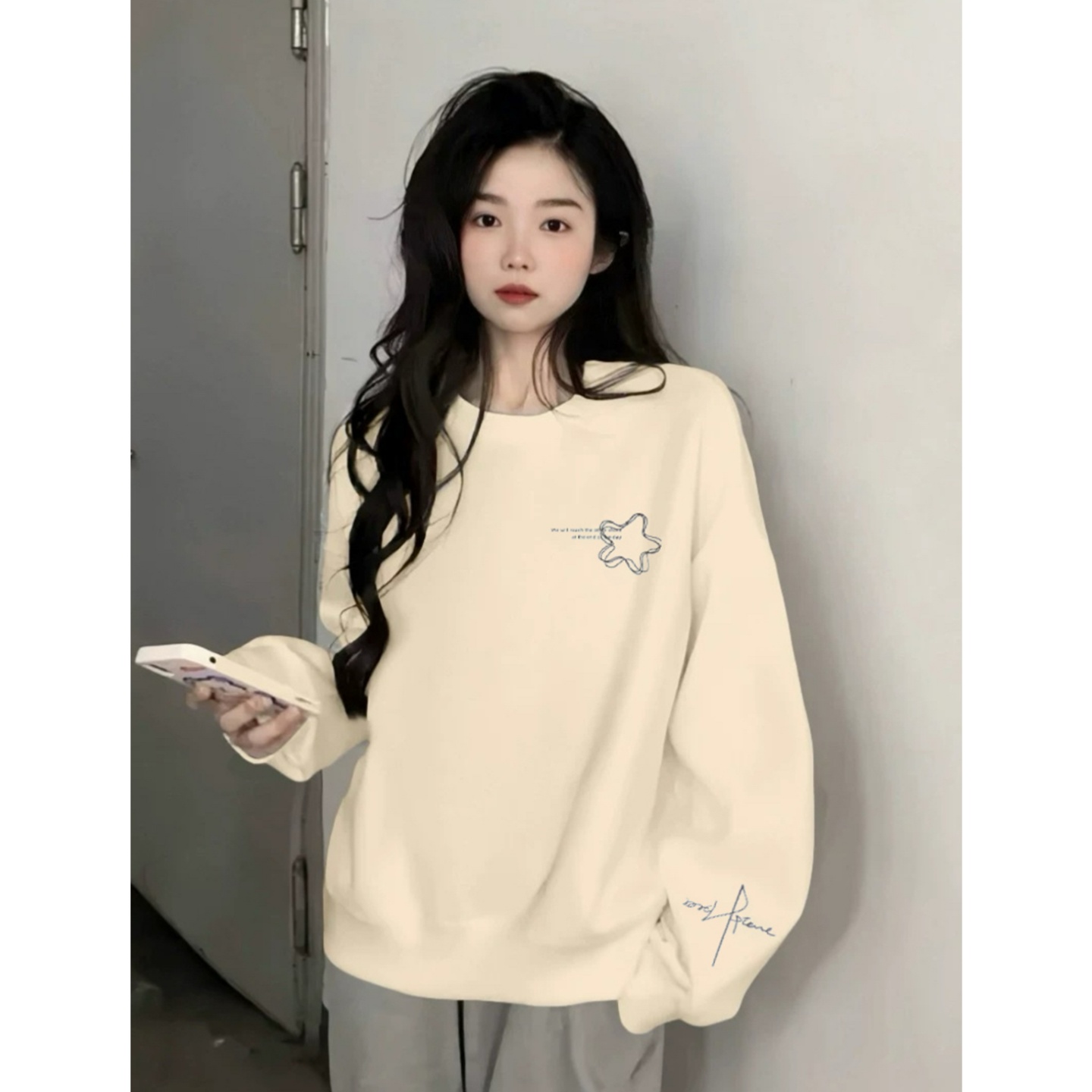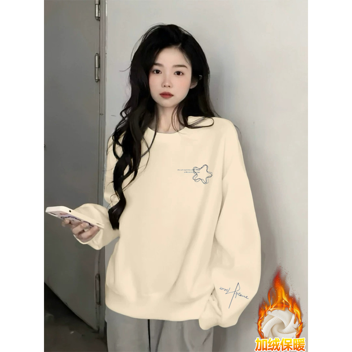 白色圆领套头卫衣女宽松秋冬保暖2025新款小个子加绒加厚大码上衣