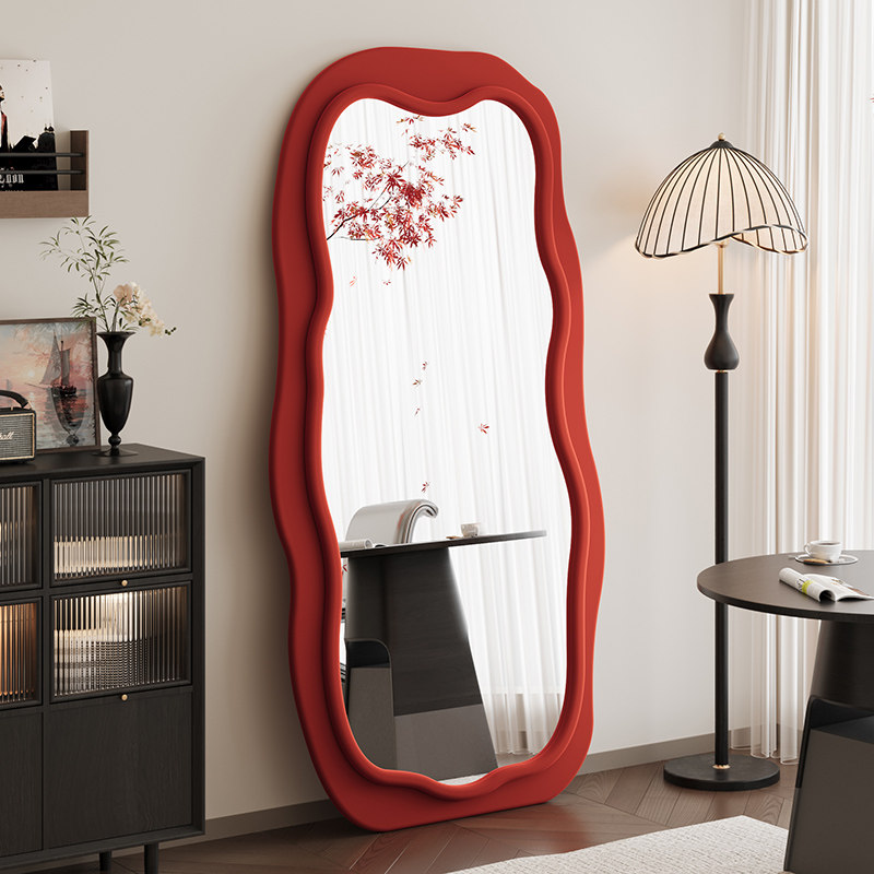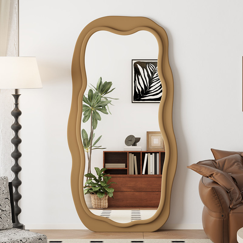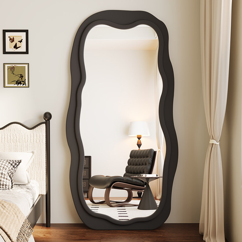 奶油风试衣镜全身落地镜家用卧室镜法式高级轻奢镜波浪异形穿衣镜