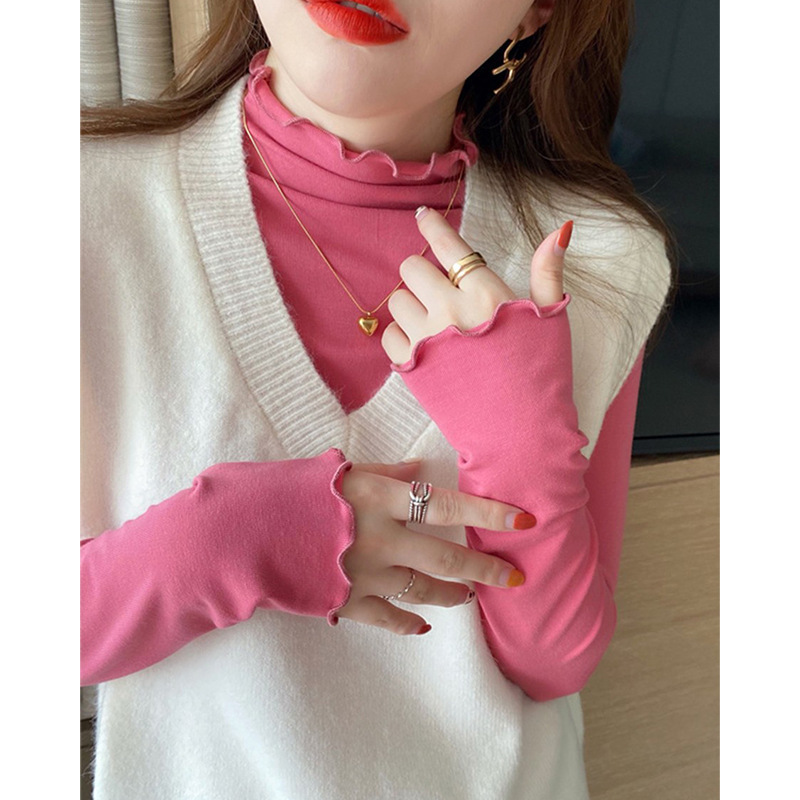 木耳边打底衫女2025春秋季新款小香风内搭纯棉长袖t恤半高领衣女