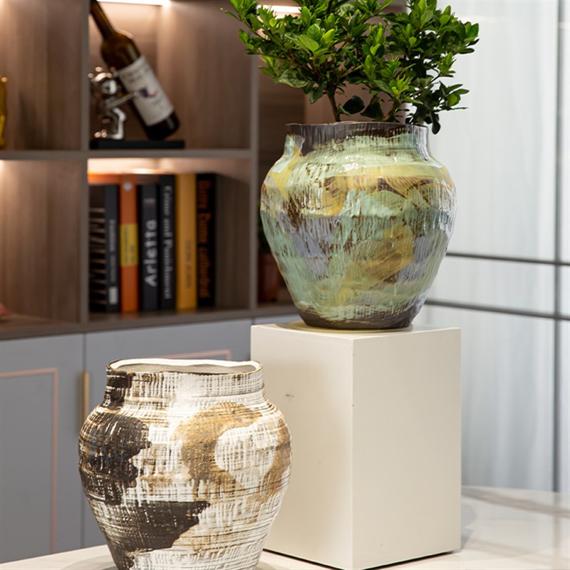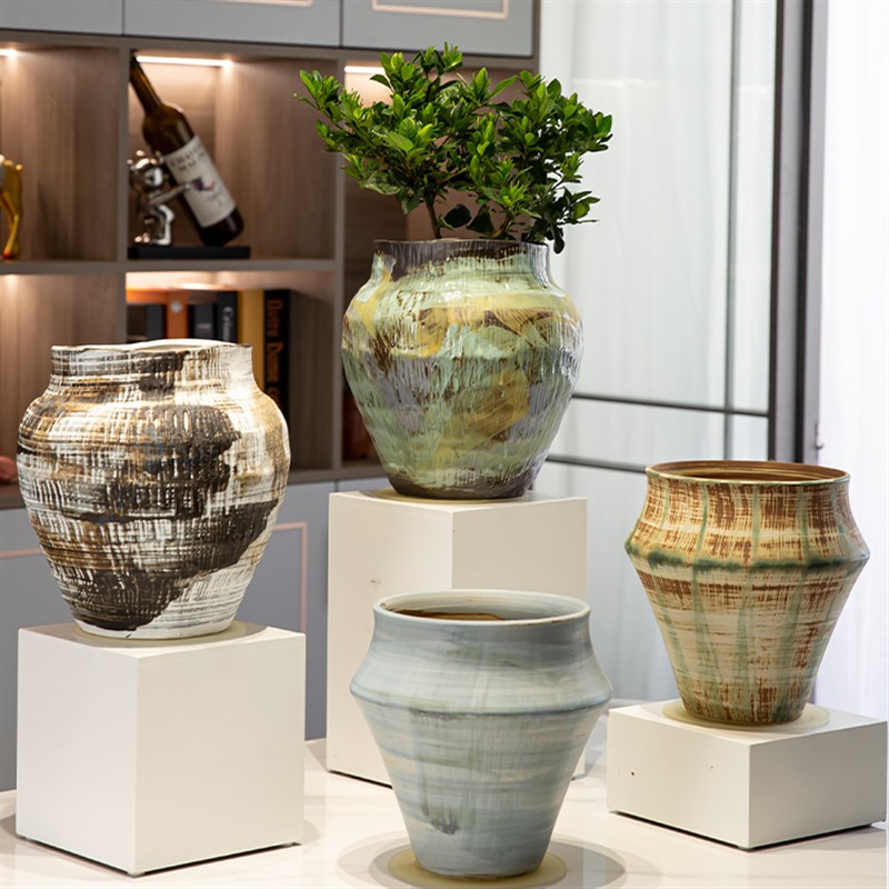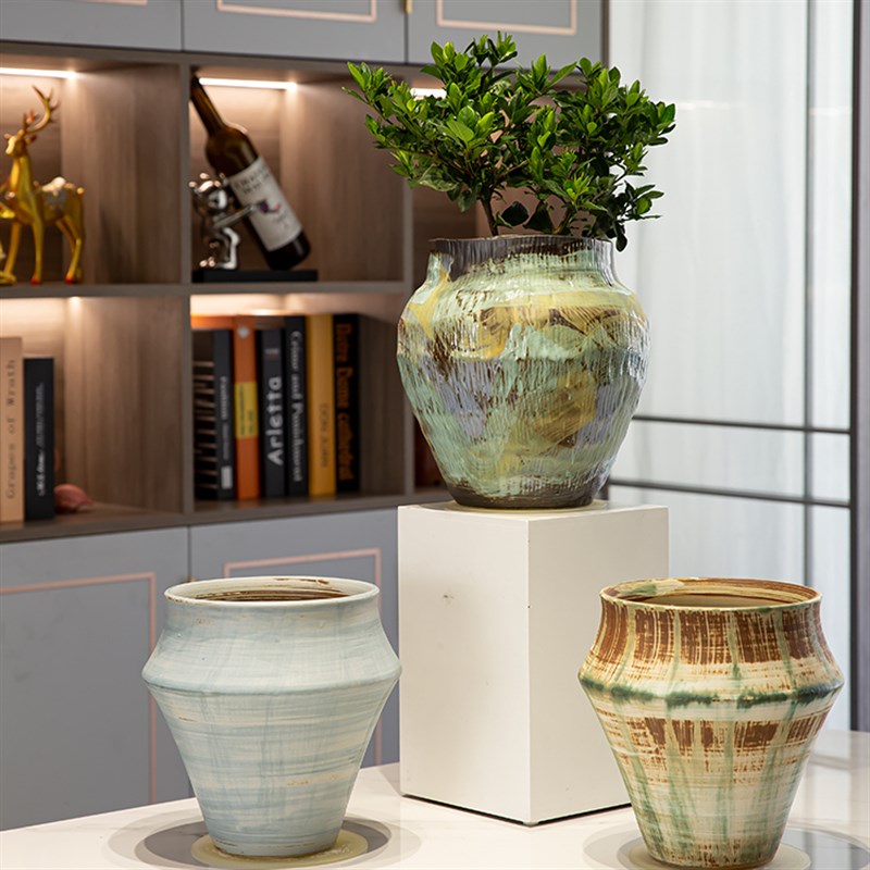 景德镇多肉花盆陶瓷创意法师老桩透气粗陶大口径复古简约绿植摆件