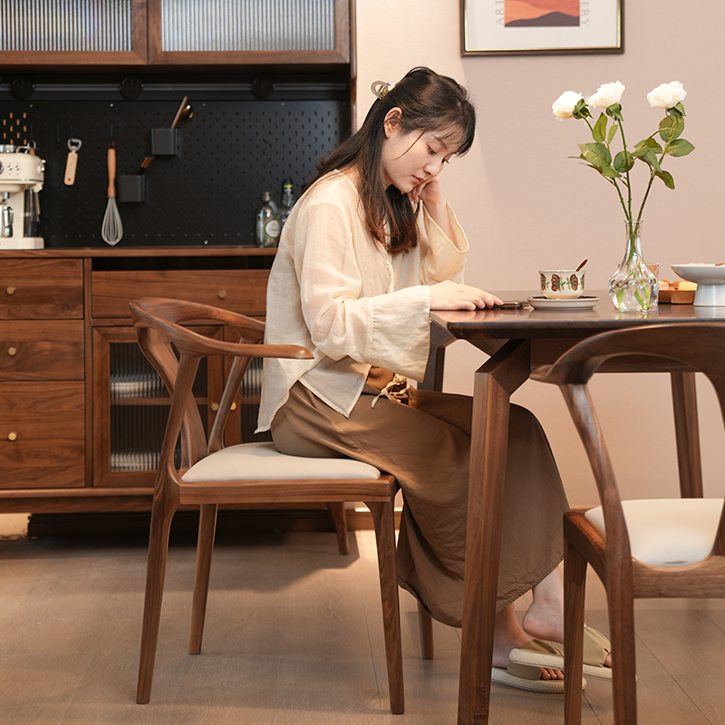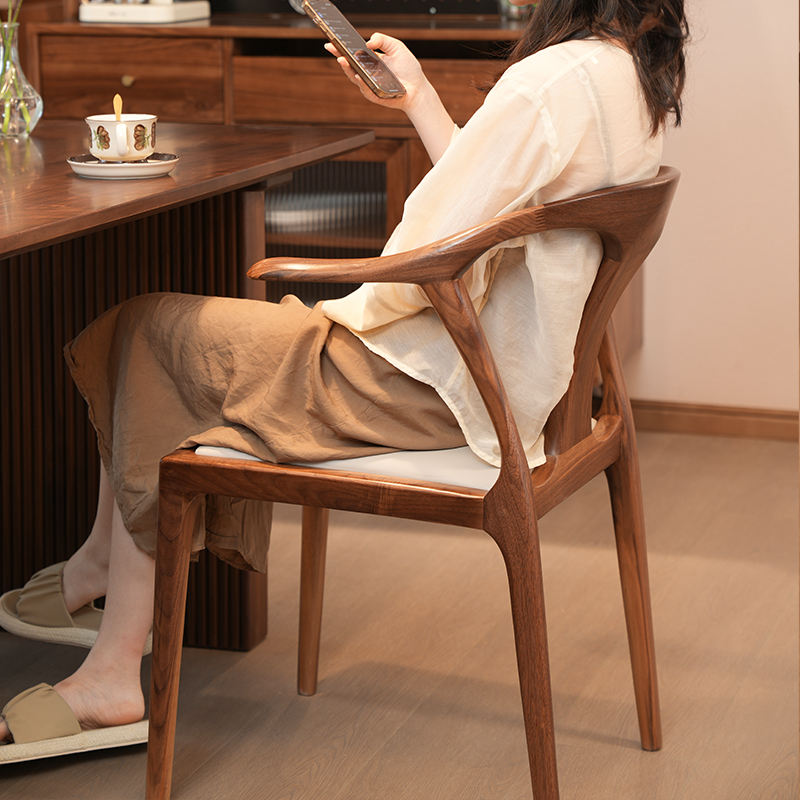 北美黑胡桃木餐椅家用全实木扶手椅子北欧现代简约靠背椅子休闲椅