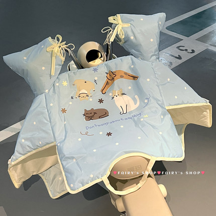 可爱条纹电动车挡风被保暖加厚骑行加大加宽新款电瓶摩托车防风罩