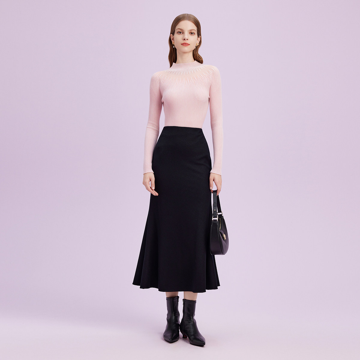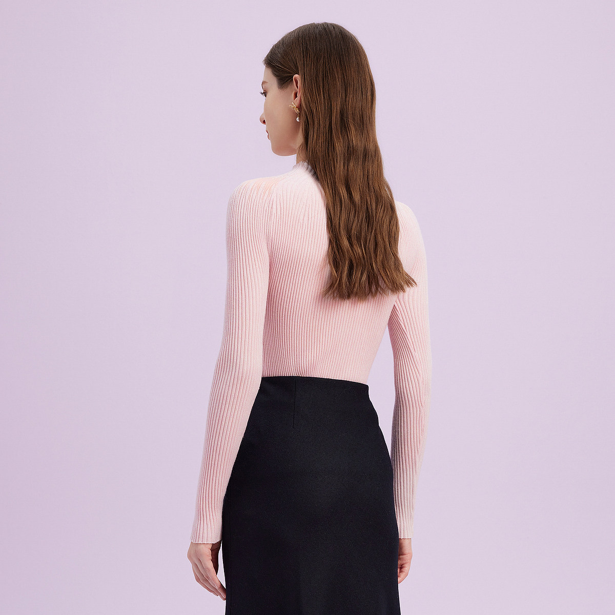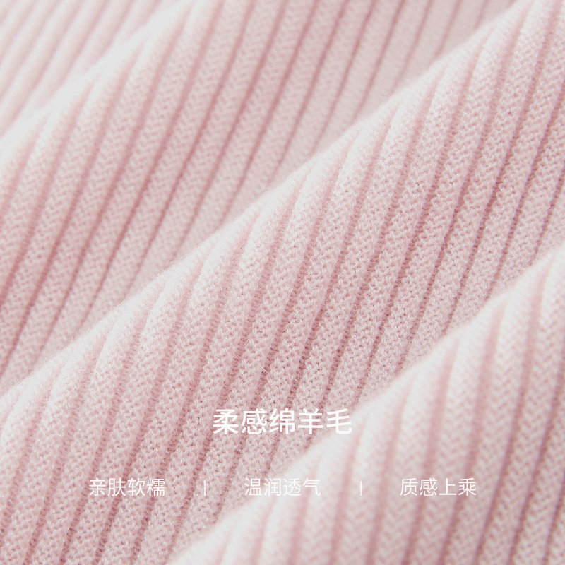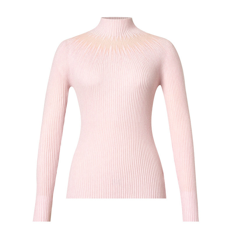 La Koradior拉珂蒂商场同款粉色气质收腰打底针织衫半高领套头衫