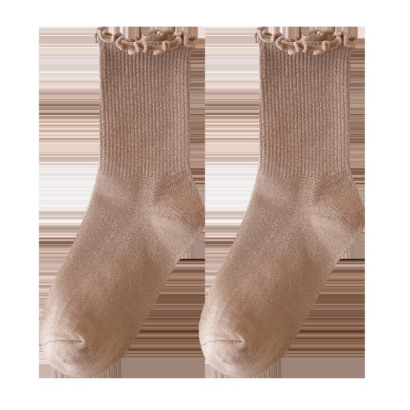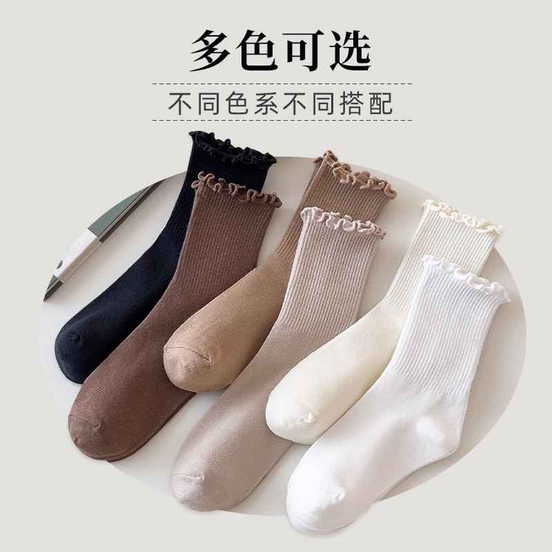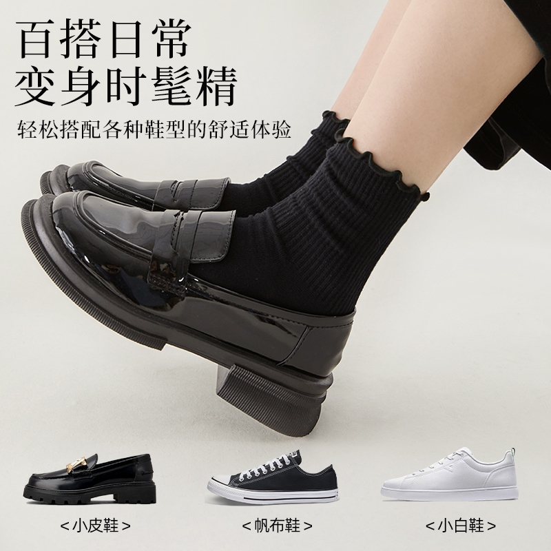 木耳花边黑色袜子女堆堆袜搭配小皮鞋乐福鞋中筒袜春秋季长袜秋天
