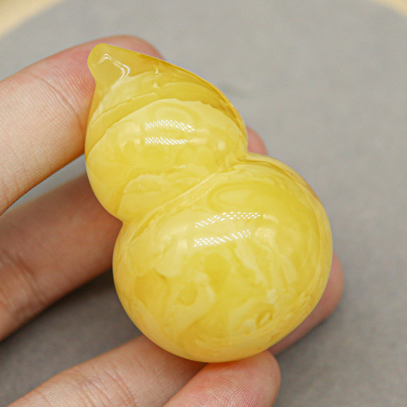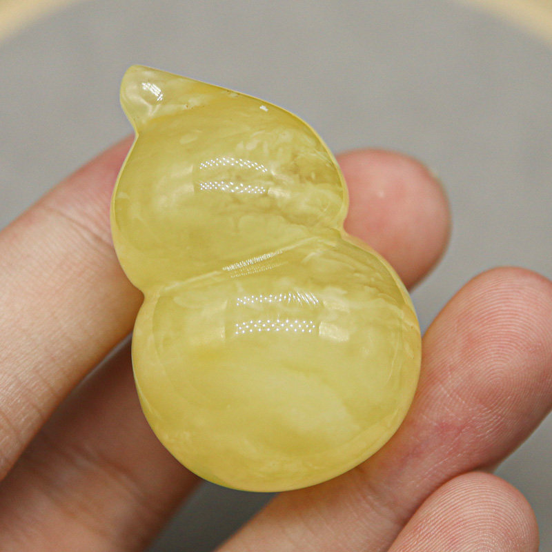 天然原矿琥珀蜜蜡葫芦吊坠项链雕刻件车挂钥匙扣毛衣链男女鸡油黄
