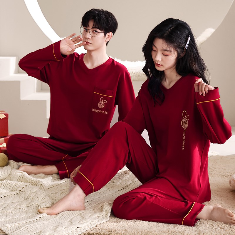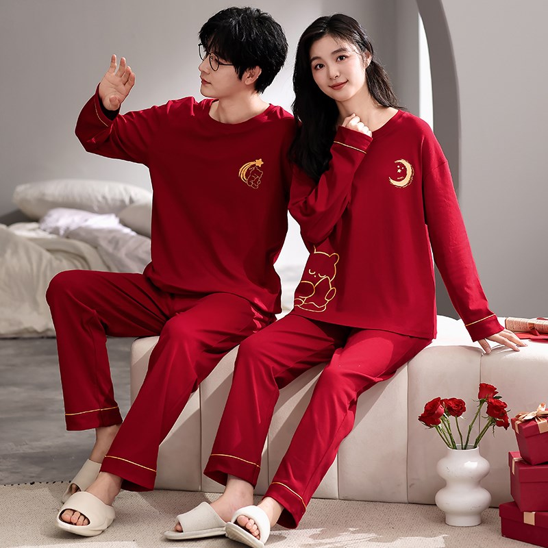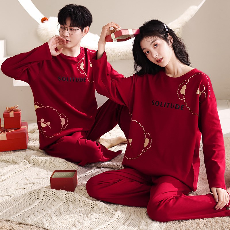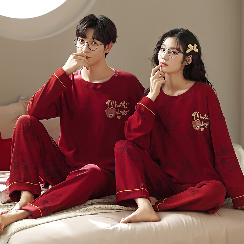 速发结婚睡衣新婚情侣套装一男一春秋长袖可爱红色本命年家居服